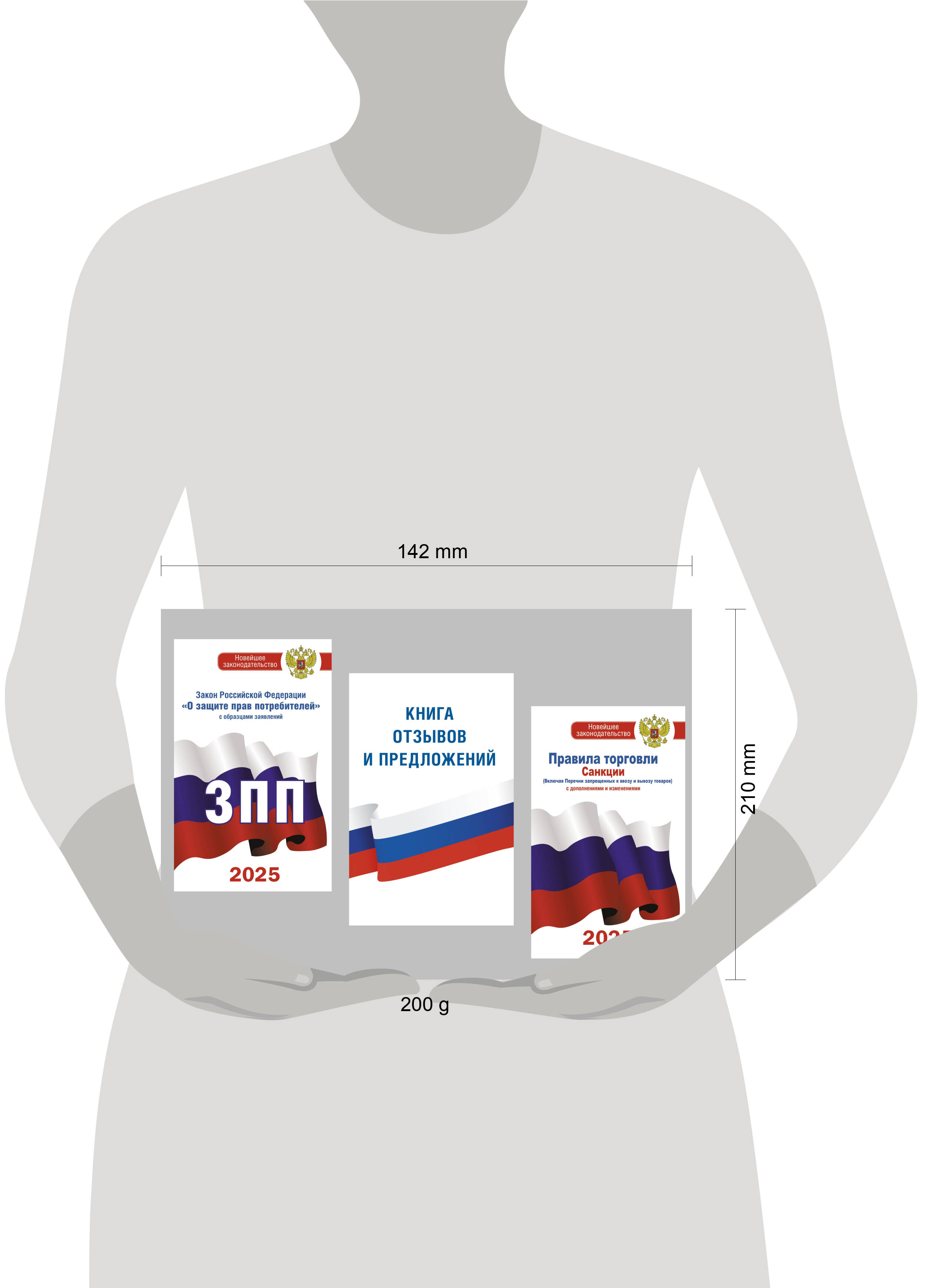 Комплект из 3-х книг для уголка потребителя: Книга отзывов и предложений, Закон РФ "О защите прав потребителей", Правила торговли с изменениями и дополнениями на 2025 год