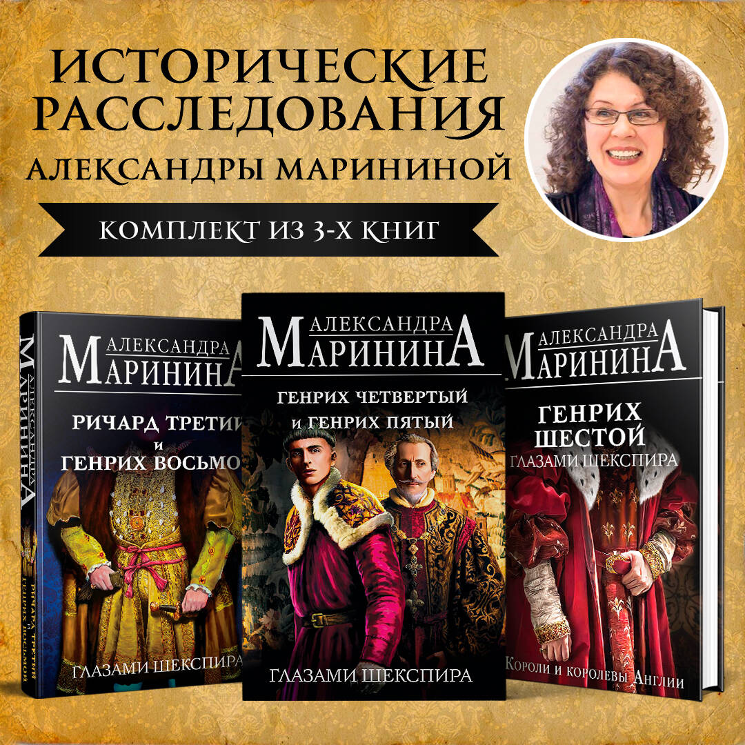 Исторические расследования Александры Марининой. Комплект из 3-х книг. 5 знаменитых английских королей под одной бандеролью! Пригласив в качестве главного свидетеля самого Шекспира, Александра Маринина иронично и психологически убедительно рассказывает истории о гордых монархах, коварных придворных и амбициозных красавицах. С ее легкой руки «преданья старины глубокой» оказались столь же увлекательны, как детектив, и столь же изящны и легки, как музыкальная миниатюра. Увлекательная панорама английской истории почти за 200 лет: от избранника фортуны Генриха Четвертого до любвеобильного Генриха Восьмого. Удивительно, насколько современными покажутся мотивы поступков шекспировских героев в пересказе Александры Марининой, которая вместе с гениальным драматургом задается вопросом: почему правители торжествуют на полях сражений, но проигрывают собственным демонам.| Издательство | ООО "Издательство "Эксмо" |