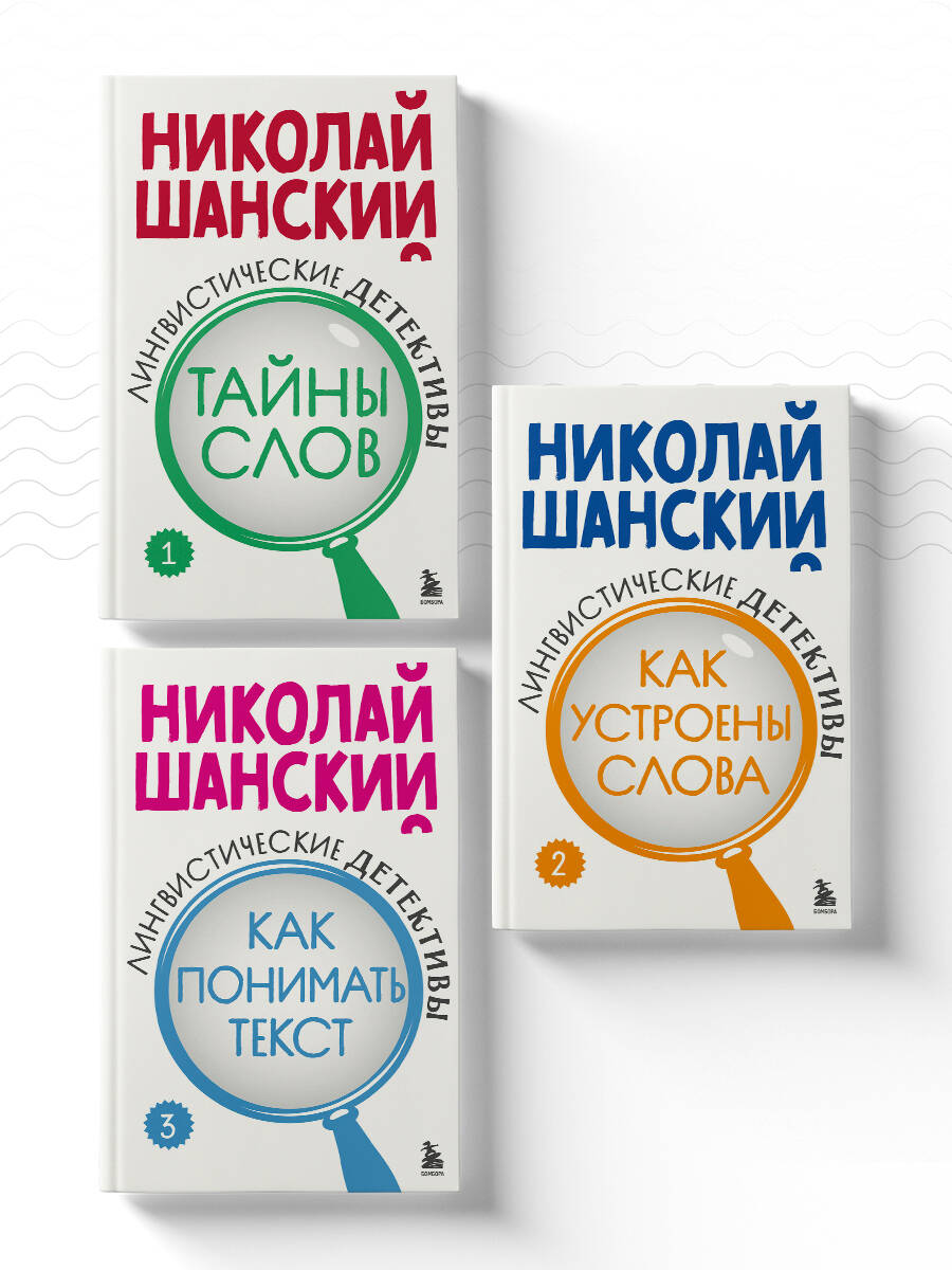 Комплект из трех книг популярных лингвистических детективов знаменитого лингвиста Николая Максимовича Шанского. В комплект входят 3 книги: «Тайны слов», «Как устроены слова», «Как понимать текст». «Лингвистические детективы» - это путеводитель по удивительному и загадочному миру нашего великого языка. Почему что-то или кто-то называется так, а не иначе? Где родилось то или иное слово? Всегда ли оно писалось так, как сейчас? Развернутые ответы на самые неожиданные вопросы из области лингвистики; увлекательно о значении, строении и происхождении слов, оборотов и «трудных строк» из произведений русской классики. Рассказы о словах можно читать в любом порядке, который удобен именно вам!