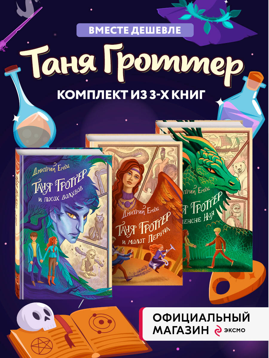 Комплект из 3-х книг: 1. Таня Гроттер и посох волхвов 2. Таня Гроттер и молот Перуна 3. Таня Гроттер и пенсне Ноя Переиздание к юбилею легендарной серии "Таня Гроттер"! 20 лет на российском рынке! Дмитрий Емец один из самых известных отечественных авторов для детей. Суммарный тираж его книг превысил 5 миллионов экземпляров. У автора своя активная армия поклонников во всех уголках России. Встречи с автором всегда проходят с аншлагами. Серия "Таня Гроттер", едва появившись на рынке, завоевала сердца огромного количества читателей, с ней многие подростки полюбили мир книг. Потрясающее оформление! Все 14 книг серии, составленные корешками вместе, образуют картинку с изображением магической школы. ЦА: 12-14 лет.| Издательство | ООО "Издательство "Эксмо" |