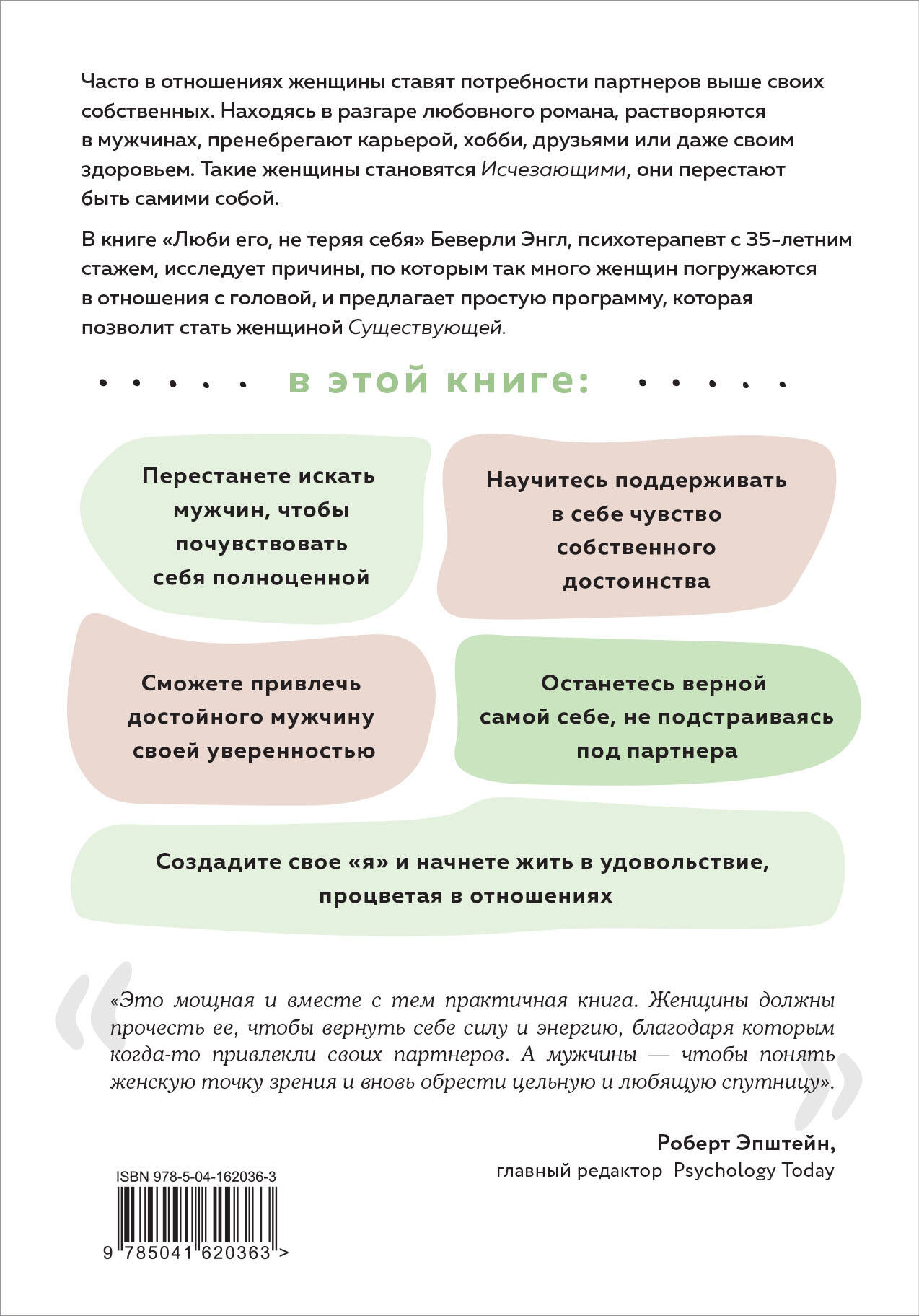 В комплект вошли 3 книги: "Синдром хорошей девочки. Как избавиться от негативных установок из детства, принять и полюбить себя", "Исцели свои травмы. Как оставить в прошлом страх и стыд, поднять самооценку и успокоить внутреннего критика" и "Любить его, не теряя себя. Как перестать растворяться в отношениях, сохранить личные границы и свое "я"". Аннотация на "Синдром хорошей девочки. Как избавиться от негативных установок из детства, принять и полюбить себя" Женщины постоянно мирятся с неприемлемым или даже жестоким обращением со стороны окружающих, в особенности мужчин. Мне становится грустно каждый раз, когда я слышу от женщин о плохом обращении. И, хотя ответ мне известен, я часто ловлю себя на мысли: "Почему они терпят все это?". Еще больше меня печалит то, что эти женщины переживают за своих абьюзеров. "Как же он без меня", - самая распространенная реакция на разговоры о выходе из нездоровых отношений. Эта книга адресована женщинам, которым еще предстоит узнать, что, если они не позаботятся о себе сами, никто другой не сделает этого за них. Она для женщин, которые постоянно отодвигают на задний план свои собственные потребности, чтобы привлечь или удержать мужчину. И для женщин, постепенно начинающих понимать, что в долгосрочной перспективе быть хорошей девочкой невыгодно. В особенности для женщин, которые в настоящее время подвергаются эмоциональному, словесному или физическому насилию. Аннотация на "Исцели свои травмы. Как оставить в прошлом страх и стыд, поднять самооценку и успокоить внутреннего критика" В своей книге Беверли Энгл, психотерапевт с 35-летним стажем, рассматривает основные виды детских травм и предлагает "зеркальный метод" их исцеления. Описывая семь типов "кривых зеркал", которыми становятся для детей их родители, Энгл поясняет, как работать с каждым из них, чтобы отвергнуть негативные родительские проекции и поправить самооценку. Она подробно описывает, как воздействуют на детей чрезмерно критичные родители, родители-перфекционисты, родители-нарциссы, гиперопекающие родители, пренебрегающие родители, склонные к чрезмерному контролю родители, а также родители, которые бросали своих детей. Пройдя опросники и выполнив задания из книги, вы сможете выбраться из ловушки отражений прошлого, повысите самооценку, научитесь любить и уважать себя, лучше поймете свои истинные цели и мечты. Аннотация на "Любить его, не теряя себя. Как перестать растворяться в отношениях, сохранить личные границы и свое "я"" Часто так бывает, что вступая в новые отношения или находясь в них продолжительное время, мы жертвуем своей индивидуальностью, убеждениями, карьерой, друзьями, а иногда даже здравым смыслом. И часто этот процесс происходит незаметно для нас самих. Сначала мы уступаем, соглашаемся, а после уже отказываемся от "себя" как бы растворяясь в отношениях. Мы становимся "Исчезающими женщинами". Книга Беверли Энгл дает нам ответ на вопрос почему так происходит и обучает конкретным стратегиям - как измениться прямо сейчас и стать отдельной яркой личностью в отношениях, которую ценят и уважают. Она также содержит советы о том, как поддерживать в себе чувство собственного достоинства и индивидуальности, которые помогут привлечь мужчину и заново открыть себя как "Существующую женщину".| Издательство | ООО "Издательство "Эксмо" |
