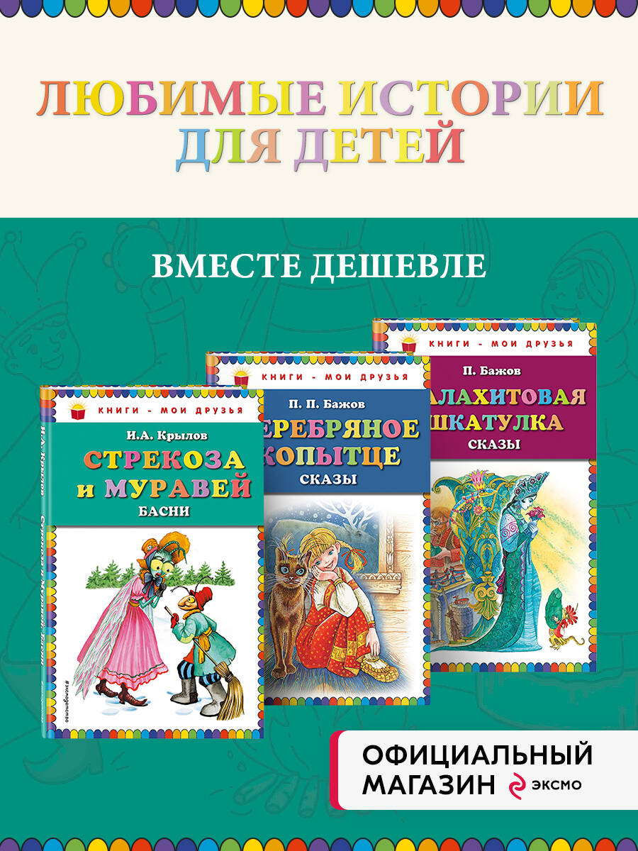 Аннотация: Комплект из 3-х книг: Стрекоза и Муравей + Малахитовая шкатулка + Серебряное копытце