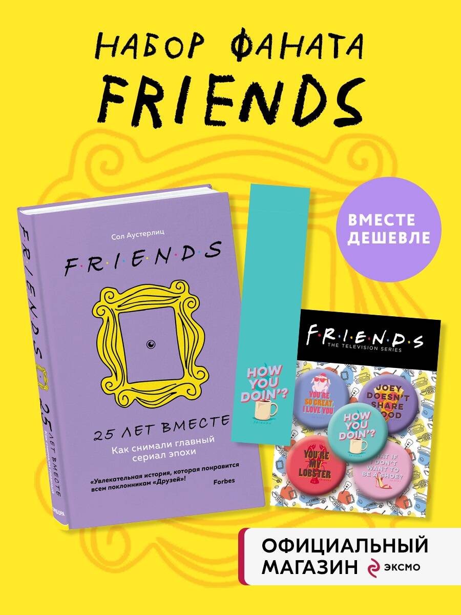 Аннотация: Комплект из 3-х предметов: Книга Друзья. 25 лет вместе + Набор значков. Friends + Закладка с резинкой.