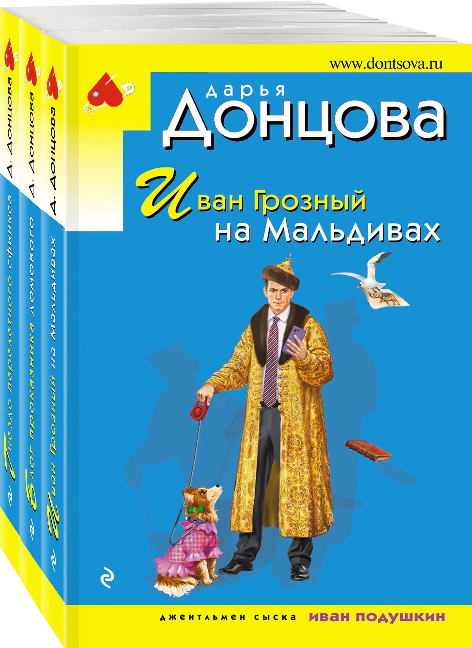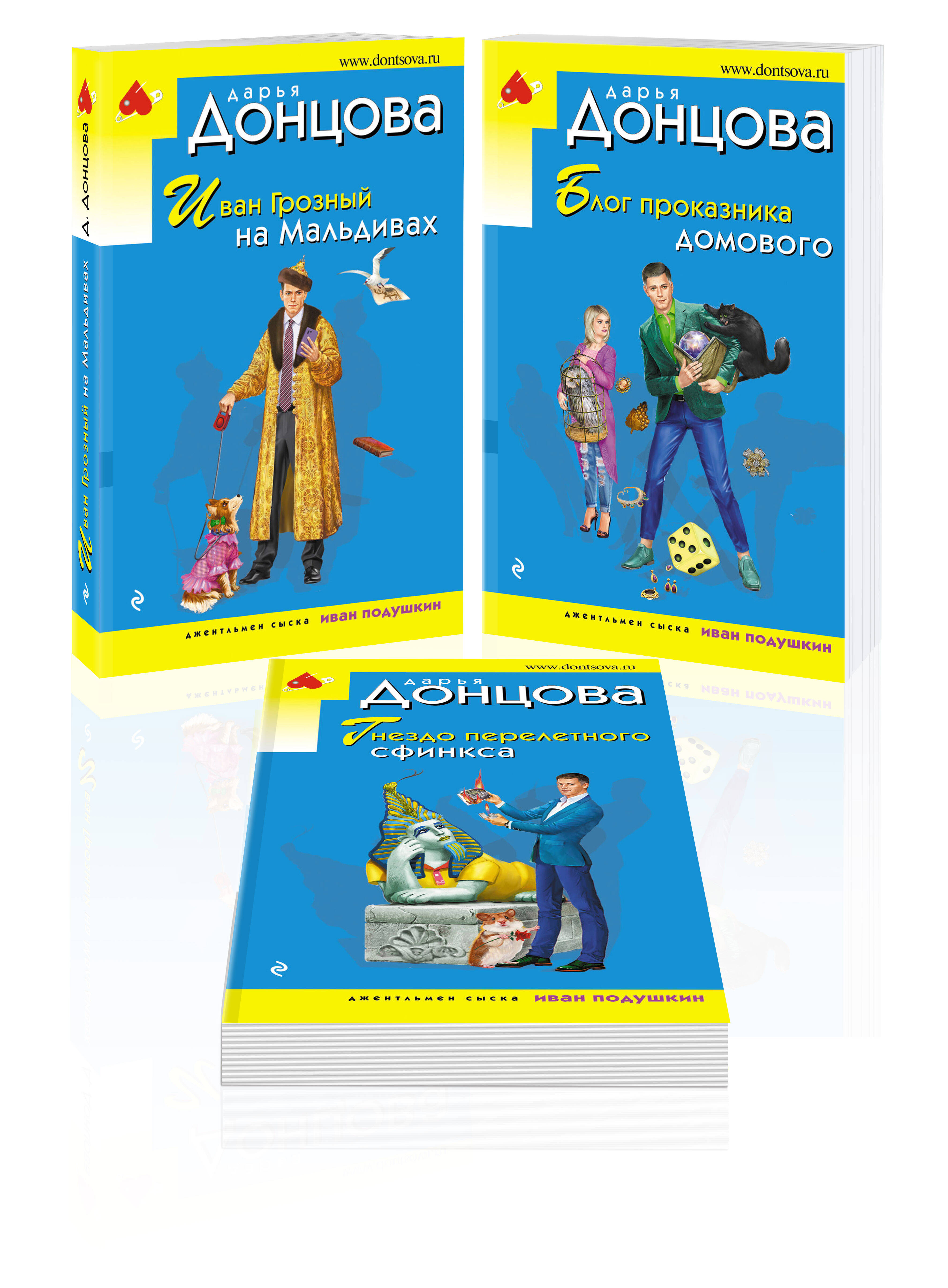 Комплект из 3-х книг. «Иван Грозный на Мальдивах» Усталый Иван Царевич способен превратиться в Змея Горыныча. А вот частный детектив Подушкин не начнет дышать огнем, даже если к нему явится мужчина по имени Боб Солнечноласкович и предложит Ивану Павловичу рекламировать фирму « Подушкин-Одеялкин». Не успел сыщик избавиться от назойливого посетителя, как пришла соседка Ирэн и попросила поговорить с дочерью своих знакомых Катей Войковой. У девушки недавно умер отец, ничего подозрительного в смерти Алексея Войкова не нашли, но Екатерина считает, что бизнесмена убили. Ирэн просит Подушкина для вида провести расследование, чтобы успокоить обезумевшую дочь. Деликатный Ваня не смог отказать, пообещав Кате найти убийцу отца. И оказалось, что ее подозрения не так уж абсурдны. Но как только Подушкин закончил это тяжелейшее расследование, опять пришел Боб Солнечноласкович и превратил все его стройные умозаключения в груду обломков. «Блог проказника-домового» Этот день был богат на сюрпризы: маменька Николетта велела Ивану Подушкину немедленно приобрести вещи по присланному списку, в котором значилось: хрустальный шар, клетка с совой, карты Таро, магические камни, перья лысого ежа, черный кот… Иван уже перестал удивляться причудам маменьки - его мысли были заняты новым расследованием. За помощью к нему обратилась Эмма Шмидт: ее мужа Роберта обвиняют в похищении драгоценностей из депозитария банка, где он работал клерком, и организации взрыва ячеек. Все рассказанное Эммой звучало как абсолютно фантастическая история... Вот тут-то Ивана ждал третий сюрприз: ему позвонил олигарх Максим Загорский и предложил взять свою дочь стажером в детективное агентство. Зарплату ей будет платить папенька. Если бы Подушкин знал, во что ввязался!.. «Гнездо перелетного сфинкса» Так и хочется воскликнуть: «Господи, избавь меня от родственников, а с врагами я как-нибудь сам разберусь!» Никогда еще Ивану Подушкину не приходилось выступать в роли специалиста по интерьеру. Но такая конспирация была оправданна. Писатель Константин Амаретти, пригласивший сыщика к себе в поместье, не хотел, чтобы его маман и младший братец узнали, кто Подушкин на самом деле и с какой целью здесь появился. А причина визита была веской: с недавних пор Амаретти стал получать анонимные письма с угрозами, и у него были все основания полагать, что автором этих «творений» был кто-то из его родственничков. Но вскоре частному детективу пришлось заняться расследованием куда более серьезного преступления! Во время его беседы с Константином из библиотеки раздался дикий вопль. Сбежавшиеся домочадцы и Подушкин обнаружили там тело несчастной экономки Инессы со странно вывернутой головой. Но более всего Ивана потрясла реакция хозяина поместья. Тот почему-то категорически отказался вызывать полицию...| Издательство | ООО "Издательство "Эксмо" |