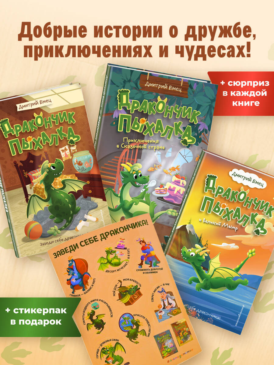 Комплект из 3 книг + стикеры: Дракончик Пыхалка, Дракончик Пыхалка и Великий Мымр, Приключения в сказочной стране (ИК)| Издательство | ООО "Издательство "Эксмо" |
