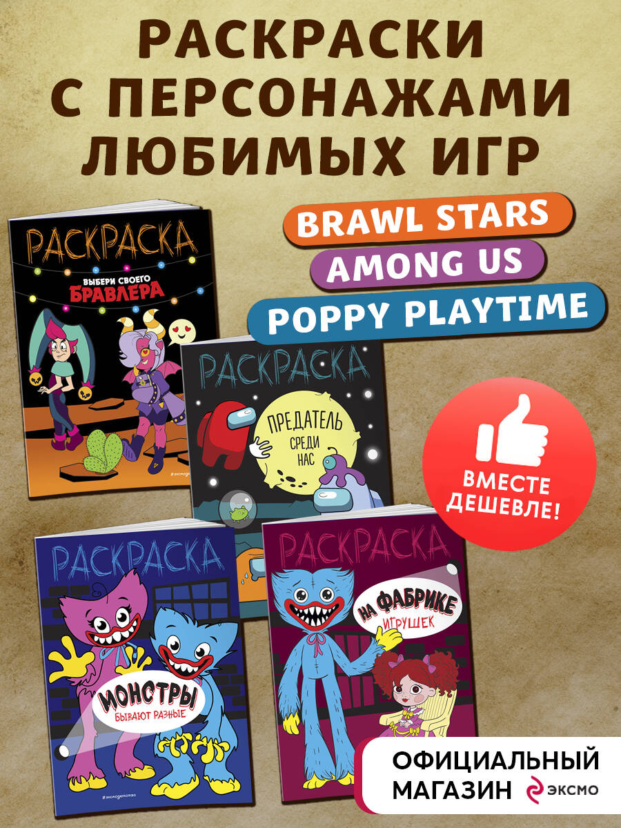 Невероятно крутой комплект, состоящий из раскрасок «Выбери своего бравлера», «Монстры бывают разные», «На фабрике игрушек» и «Предатель среди нас», созданных по мотивам твоих самых любимых игр! Если ты веришь в то, что персонажи популярных компьютерных игр вовсе не страшные, а на самом деле милые и забавные, то эти книги точно для тебя. Устраивайся поудобнее и заполняй цветом крупные, жутковатые, но вместе с этим обаятельные иллюстрации. Будь креативным, ведь только ты решаешь, как будут выглядеть знаменитые герои! Комплект станет отличным подарком на день рождения и любой другой праздник для всех поклонников «Хагги Вагги», «Эмонг Ас» и «Бравл Старс».| Издательство | ООО "Издательство "Эксмо" |