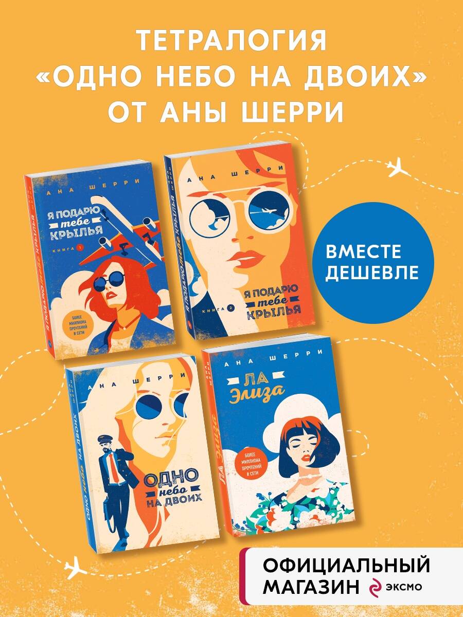 Комплект из четырех книг Аны Шерри: «Я подарю тебе крылья. Книга 1» + «Я подарю тебе крылья. Книга 2» + «Одно небо на двоих» + «Ла Элиза»! Оливия Паркер была рождена летать. Ее не остановит ни личная трагедия, ни смена родного Лондона на экзотический Дубай, ни высокомерный капитан двухпалубного А380, с которым Оливия вынуждена заключить пари - проигравший уходит с борта крупнейшего пассажирского самолета. Даниэль Фернандес Торрес трижды пожалел о своем решении взять в члены экипажа заносчивую англичанку. Эта девушка - буря и шторм среди ясного неба, порыв бокового ветра, меняющий направление самолета. Невозможная, упрямая, гордая и такая… прекрасная. История ненависти и любви в экипаже крупнейшего пассажирского самолета в экзотических декорациях от популярного интернет-автора. Более миллиона прочтений в Сети!