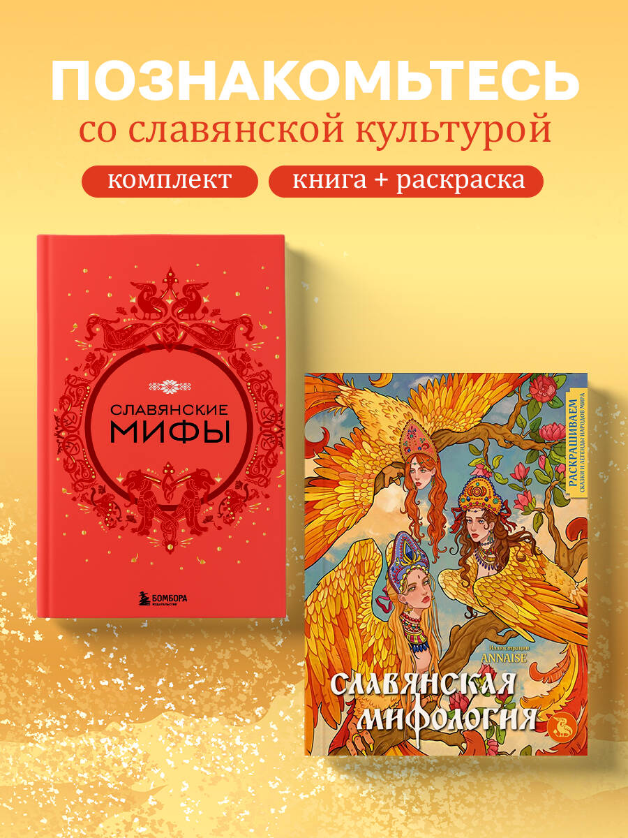 Комплект из книги и раскраски. «Славянские мифы» 1. «Славянские мифы» «Славянские мифы» - новая книга о славянской мифологии, которая увлечет вас тайнами и загадками, скрытыми в глубинах времени. Из этой книги вы узнаете, как наши предки представляли себе устройство мира, кем были их главные божества, как им поклонялись, каковы их основные черты и атрибуты. Вы познакомитесь с такими божествами, как Перун, Сварог и Велес, Ярила, Мокошь и Лихо, с нечистью, которая нашла свое воплощение в фольклоре: Баба Яга, Кощей Бессмертный, Мороз и Водяной. Вы узнаете об обычаях и традициях, которые зародились в древности, но живы и сегодня, - как, например, установка новогодней елки или традиция прыгать через костер на Ивана Купалу. Цветные и черно-белые иллюстрации, QR-коды, ведущие на страницы музеев и энциклопедий, дополнят путешествие в мир славянских мифов и легенд! Из книги «Славянские мифы» вы узнаете о формировании эпоса, о появлении мифологических образов и приемов в русских былинах. Она описывает первых богатырей и их возможное происхождение от древнеславянских божеств. Помимо этого, книга содержит множество интересных фактов о том, как мифологический образ отражается в искусстве, быте и культуре, что делает эту книгу поистине уникальной. Отправляйтесь в удивительное путешествие по миру мифов и легенд! Серия книг «Мифы мира. Самые сказочные истории человечества» познакомит вас с захватывающими историями разных стран и народов. Это идеальный способ погрузиться в мир иных культур и расширить свой кругозор. Станьте свидетелем эпических битв богов, загадочных ритуалов и легендарных героев! 2. «Славянская мифология. Раскрашиваем сказки и легенды народов мира» Баба Яга, Кощей Бессмертный, Царевна Лягушка - все эти персонажи знакомы нам из детства. Самое время вспомнить любимых героев и окунуться в яркий мир славянских мифов и сказок, а поможет тебе в этом волшебная раскраска, созданная профессиональной художницей-комиксисткой Анастасией Салогуб. Яркие герои и захватывающие сюжеты уже ждут, когда ты добавишь в них красок, а продуманная композиция и обилие деталей обеспечит полное погружение в творческий процесс. Серия «Раскрашиваем сказки и легенды народов мира» - это множество авторских иллюстраций со сказочными персонажами, героями древних мифов и легенд, которые скрасят ваш досуг и помогут развить творческое мышление. На каждом развороте одна иллюстрация, поэтому можно не бояться, что следы останутся на соседней странице, и использовать разные материалы.| Издательство | ООО "Издательство "Эксмо" |