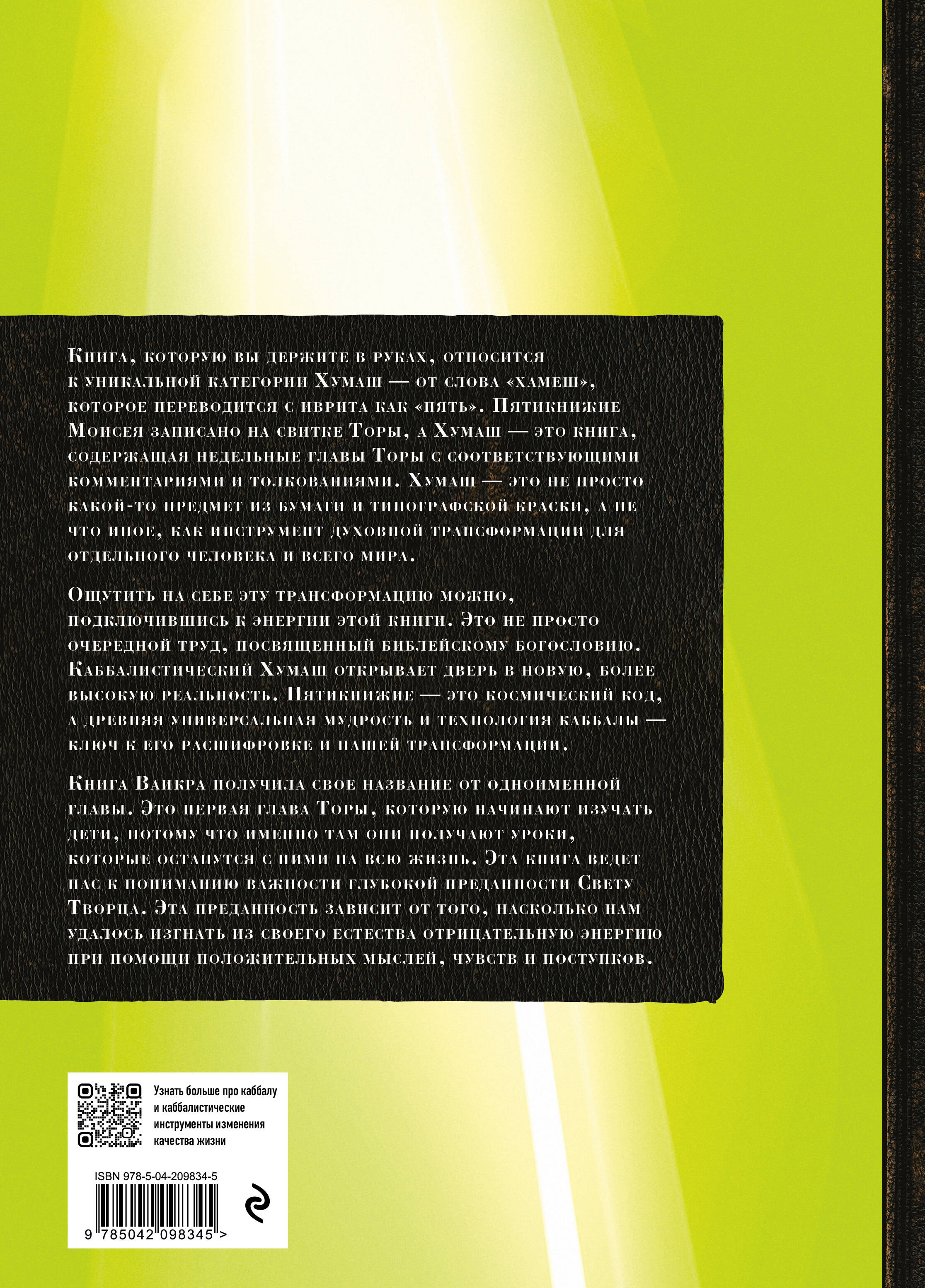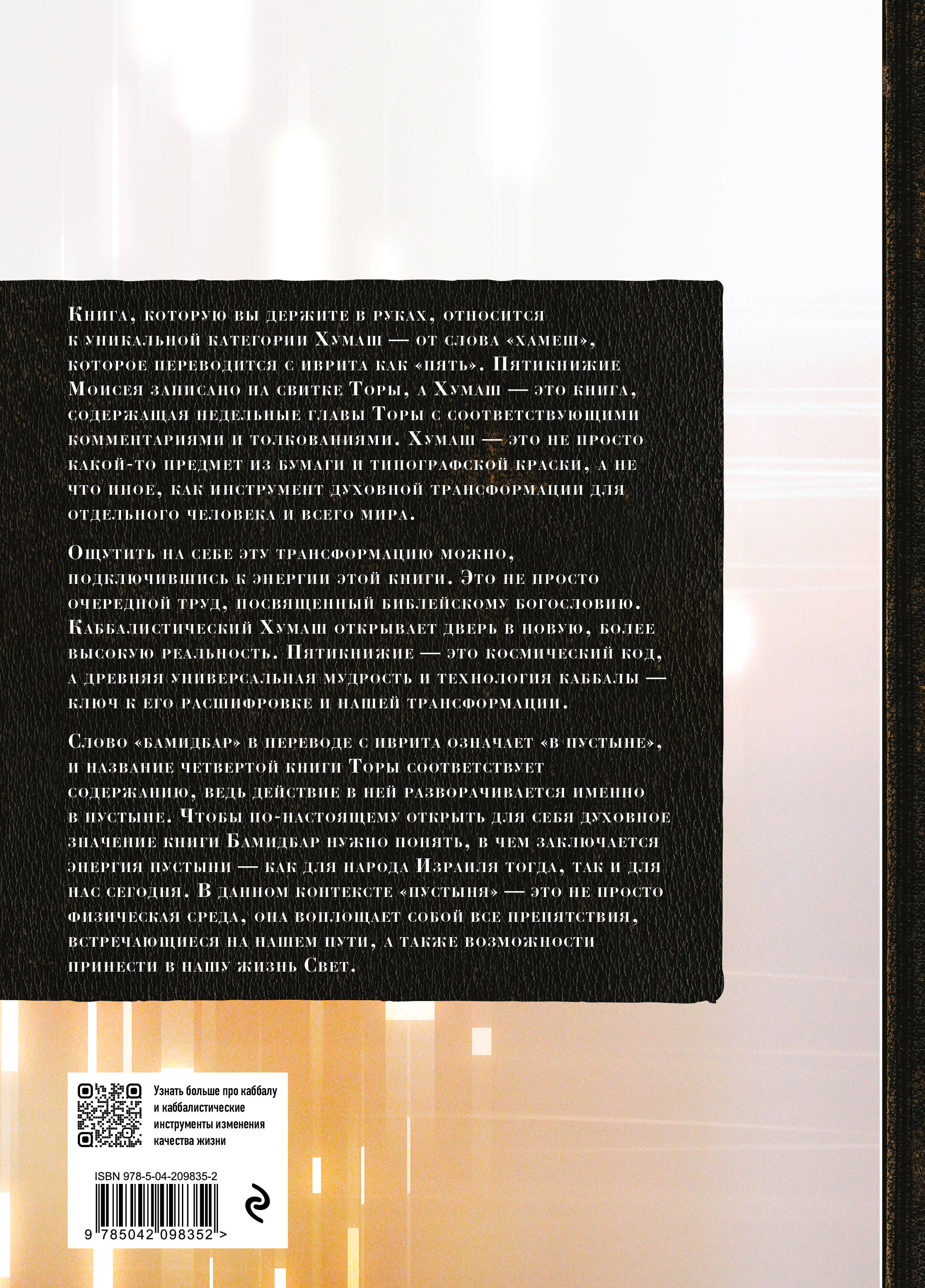Чтение книг Каббалистической Библии дает возможность подключиться к истоку жизни и к самой силе Творения. Каббала учит, что даже самые, казалось бы, маленькие нюансы священного текста могут привести к трансформации человека, возвысить душу и даже спасти жизнь.| Издательство | ООО "Издательство "Эксмо" |