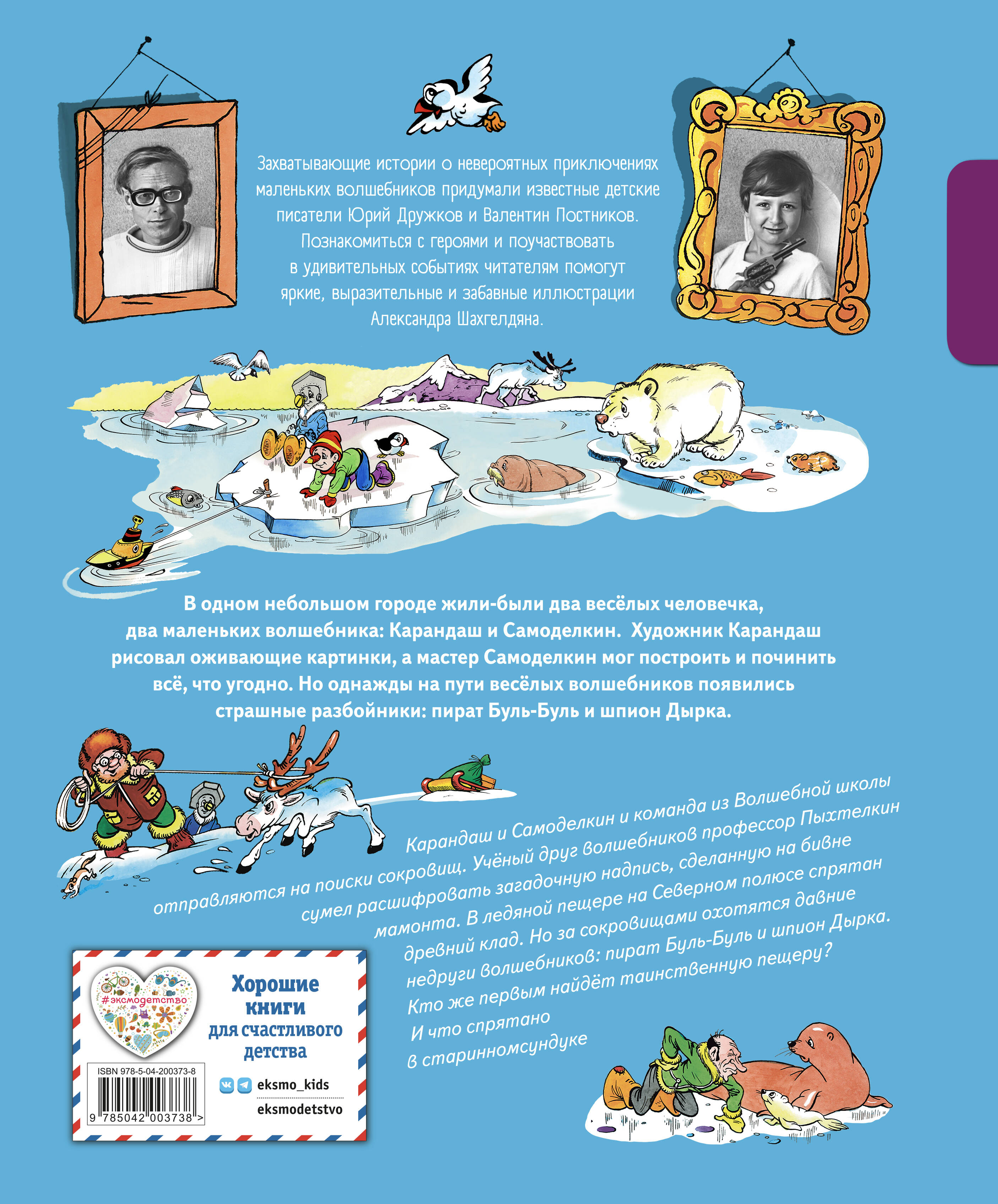 ДВЕ УВЛЕКАТЕЛЬНЕЙШИЕ СКАЗОЧНЫЕ ИСТОРИИ И ПОДАРОК-СЮРПРИЗ - В ОДНОМ КОМПЛЕКТЕ! Знаменитые маленькие волшебники - художник Карандаш и железный мастер Самоделкин - снова с нами! Отважные, весёлые и находчивые герои известнейших детских книг, написанных самыми добрыми отечественными сказочниками Юрием Дружковым и Валентином Постниковым, отправляются в необыкновенные путешествия и приглашают с собой всех читателей! Какую тайну скрывают вечные льды на разных полюсах Земли? Любознательные, смелые и неунывающие человечки отправляются в невероятные, захватывающие путешествия, не боясь трудностей и опасностей. Они обязательно разгадают все загадки Арктики и Антарктиды, несмотря на то, что за каждым их шагом следят коварные разбойники. Книги подарочного формата в твёрдом переплёте с выпуклыми элементами и частичным лаком. Цветные форзацы. Плотная белая бумага. Чёткий крупный шрифт. Яркие полноцветные иллюстрации известного художника Александра Шахгелдяна. Замечательный подарок к Новому году и Рождеству Христову, ко дню рождения и к другим праздникам. Популярные персонажи отечественной детской классики порадуют мальчиков и девочек, школьников и дошкольников, а также напомнят папам, мамам, бабушкам и дедушкам их любимые книги.| Издательство | ООО "Издательство "Эксмо" |