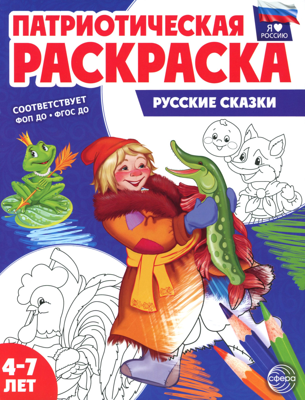 Представляем новую линейку патриотических раскрасок серии «Я люблю Россию» на разные темы. Каждый сюжет раскраски сопровождается стихотворением. Дети познакомятся с символами России, военными профессиями, техникой, народами России, их промыслами и т.д. Раскраски в игровой форме помогут вырастить настоящих патриотов! Полный состав: 1. Патриотическая раскраска. Я люблю Россию. Праздники России (4-7 лет). 2. Патриотическая раскраска. Я люблю Россию. Русские сказки (4-7 лет).| Издательство | Творческий центр Сфера |