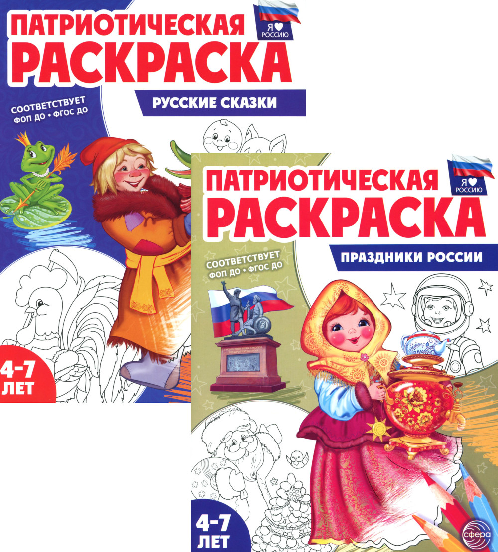 Комплект книг. Патриотическая раскраска: Праздники России и Русские сказки (2 раскраски, 4-7 лет)