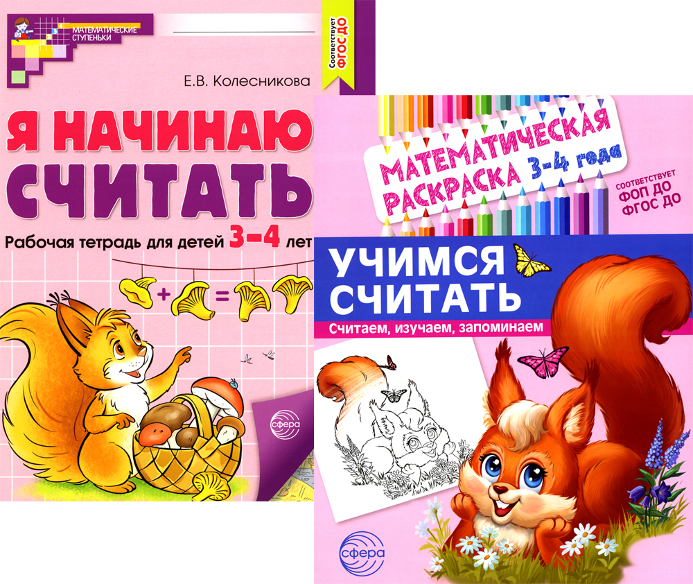 Комплект книг. Учимся считать (для детей 3-4 лет, раскраска и рабочая тетрадь)