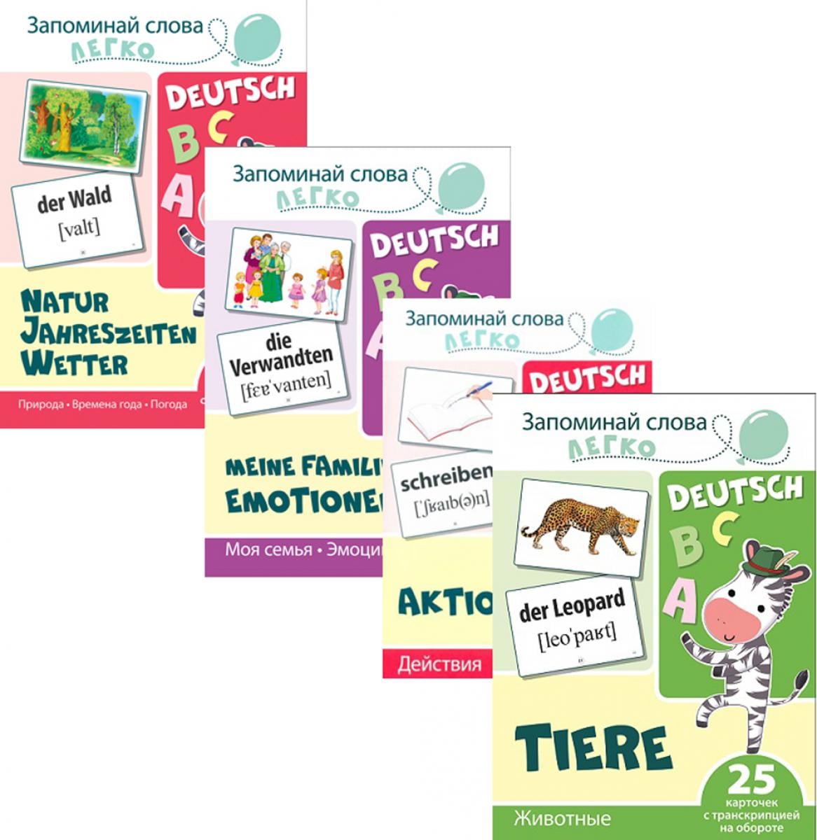 Комплект книг. Запоминай слова легко. Немецкий язык (комплект из 4 наборов карточек)