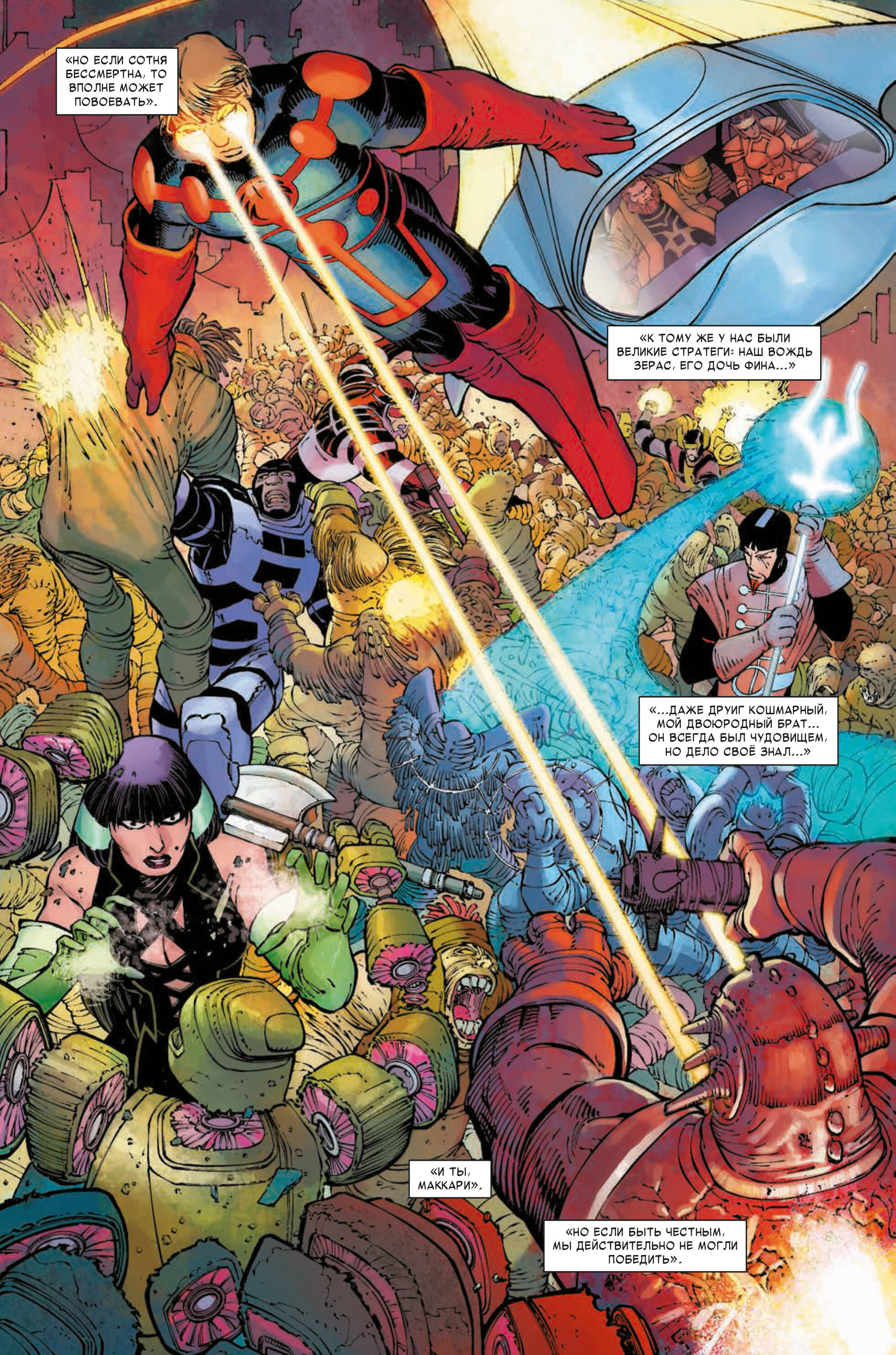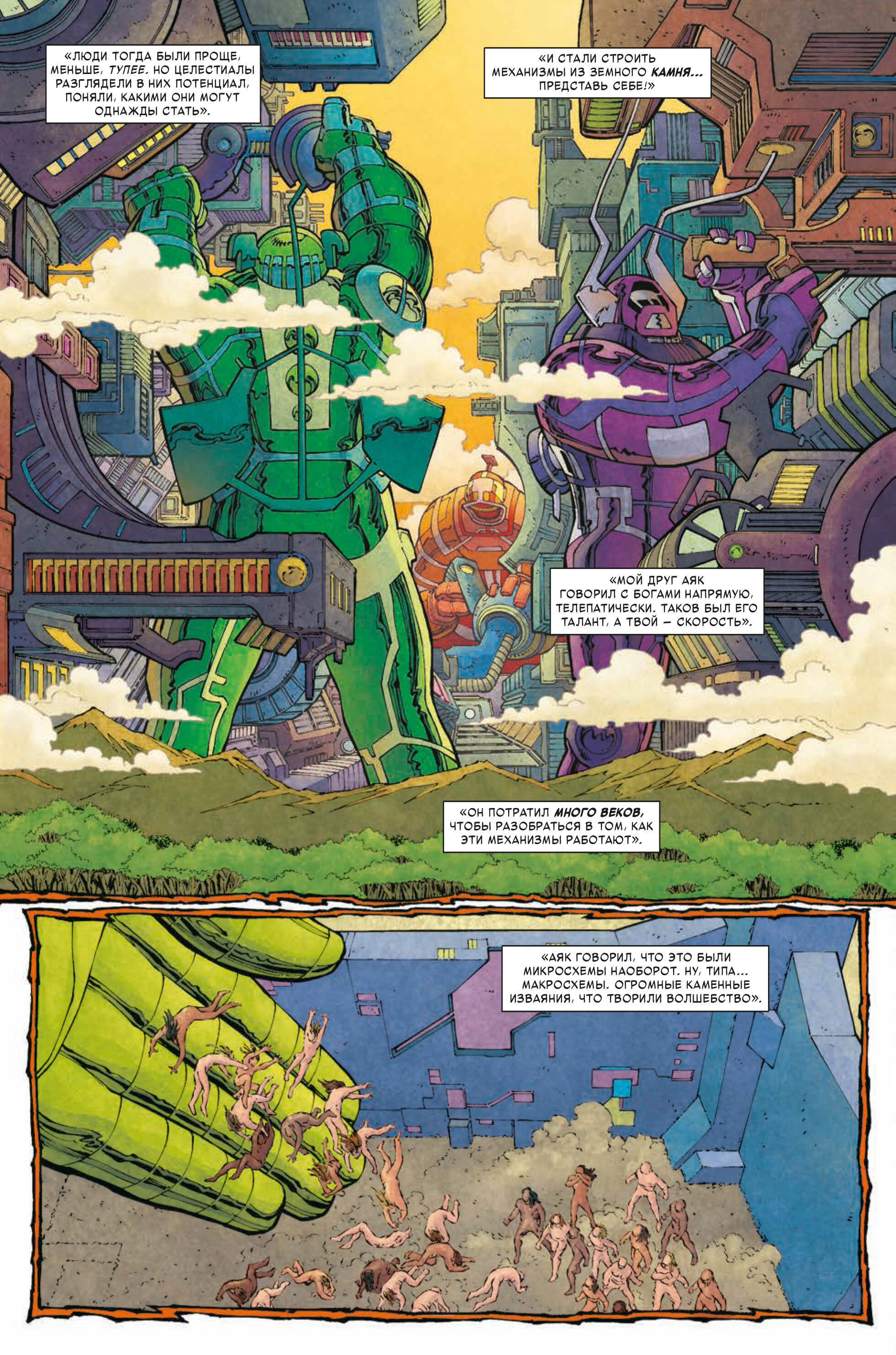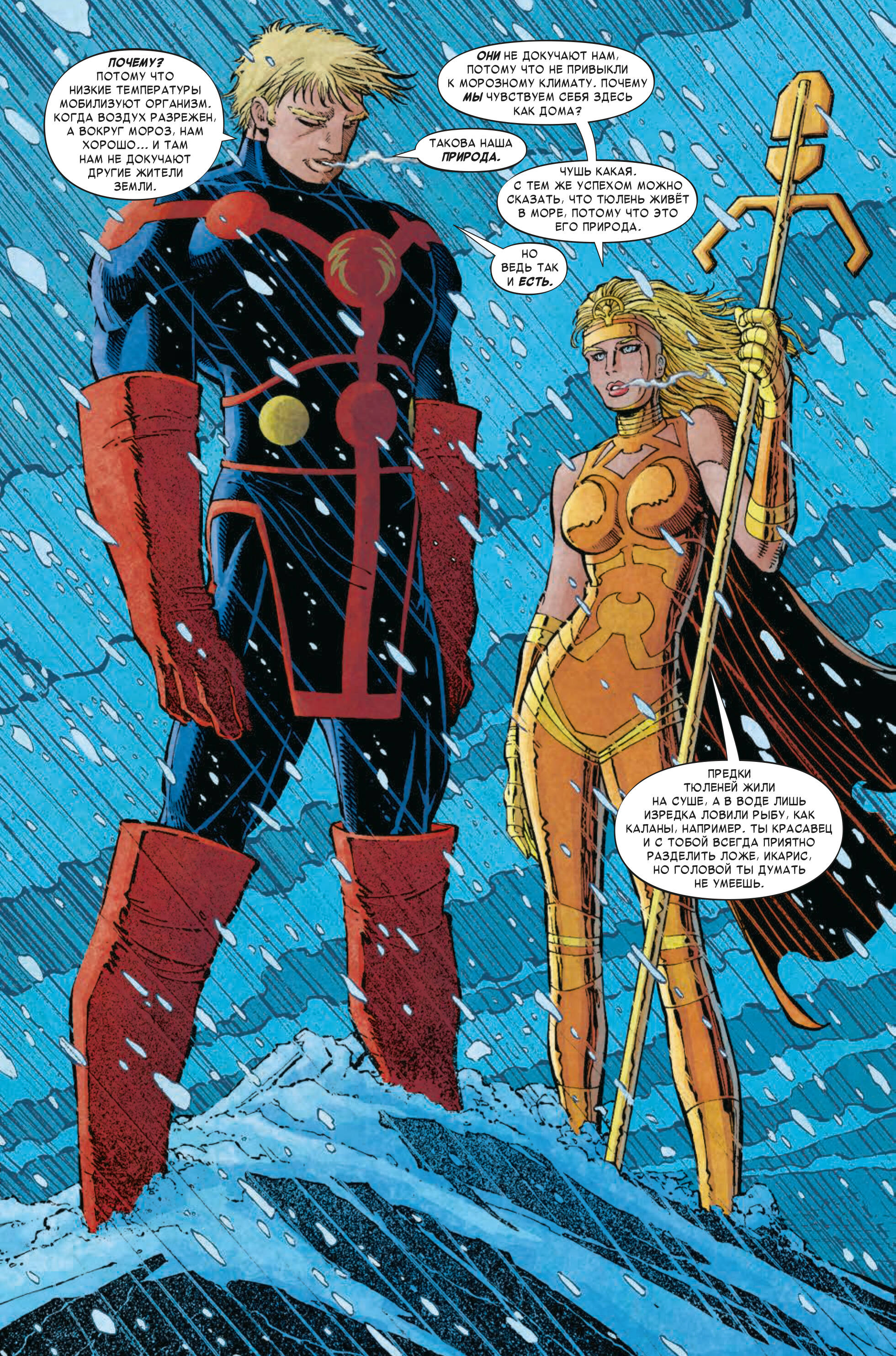 Более тридцати пяти лет назад легенда комиксов Джек «Король» Кирби вернулся в Дом Идей с, быть может, самым громким сюжетом всех времён: он придумал Вечных! Комикс родился из интереса легендарного автора к вопросам происхождения человека и появления мифов. Как и многие другие работы Короля, «Вечные» опередили своё время. Представьте себе племя бессмертных созданий, обладающих почти неисчерпаемым арсеналом сверхчеловеческих способностей! Однажды сразившись с греческими, римскими и скандинавскими богами за власть над людьми, эти создания сами стали объектами поклонения, а после отправились изучать звёзды. Они - вечные, ещё один фрагмент космической мифологии. Их противники девианты тоже тайно живут на Земле, а громадные космические существа, создавшие вечных и девиантов, Целестиалы, вот-вот прибудут на планету и решат её участь. Это только начало грандиозной космогонии, саге о богах и людях, придуманной Джеком «Королём» Кирби, одним из создателей Капитана Америка, Людей Икс, Мстителей и многих других! Перенесёмся в 2006 год: звёздные авторы Нил Гейман и Джон Ромита-мл. бережно работают с идеями Кирби и создают собственную историю: искромётную, загадочную, невероятную. С этого момента персонажи мэтра неотъемлемая часть Вселенной Marvel. Во время Гражданской войны Marvel Вечные один за другим пробуждаются ото сна и узнают, что серьёзно ошибались, считая себя обычными людьми. Но учиться контролировать новые силы времени нет: герои оказываются в самом сердце смертельно опасной схватки, которая развернулась и во времени, и в пространстве.| Издательство | Эксмо |