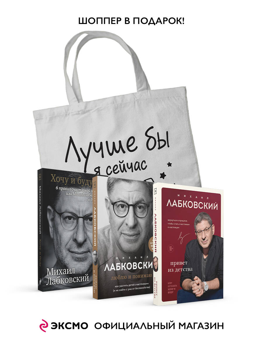 ПОДАРОЧНЫЙ КОМПЛЕКТ: Лабковский + Шоппер В ПОДАРОК В комплект входят: 1) Хочу и буду. 6 правил счастливой жизни, или Метод Лабковского в действии Одна из самых продаваемых русскоязычных книг в мире. За 6 лет только в России ее купили более 3 000 000 раз. В новом, дополненном издании Михаил подробно рассказывает о своих ставших знаменитыми 6 правилах счастливой жизни. Следуя им каждый день, вы будете вести себя как уверенный, самодостаточный и ориентированный на свои желания человек - и в итоге так себя и почувствуете! 2) Люблю и понимаю. Как растить детей счастливыми (и не сойти с ума от беспокойства) Эта книга поможет не повторять ошибок своих родителей - с собственными детьми. Как реагировать на трехлетнего бунтаря? Что делать, если малыш не хочет ходить в сад? Как выбрать школу? Что гораздо важнее оценок? Не выпускает телефон из рук - это нормально? Можно ли наказывать детей? Как помочь подростку, если он переживает, но ничего не рассказывает? Михаил разбирает эти и многие другие вопросы, объясняет, почему ребенок так себя ведет, и учит воспитывать с любовью, без которой вырасти здоровым и счастливым человеком просто невозможно. 3) Привет из детства. Вернуться в прошлое, чтобы стать счастливым в настоящем Одна из самых актуальных тем в психологии - детские травмы и их влияние на взрослую жизнь. Михаил Лабковский поможет вернуться в прошлое, к моментам, которые повлияли на вашу жизнь, чтобы понять родителей, отпустить обиды и разорвать несчастливый сценарий, который вы неосознанно проигрываете многие годы. 4) В ПОДАРОК шоппер "Лучше бы я сейчас читал, а не вот это вот всё..."