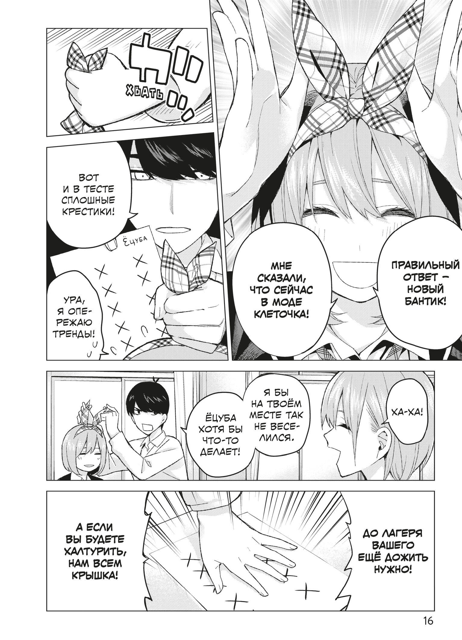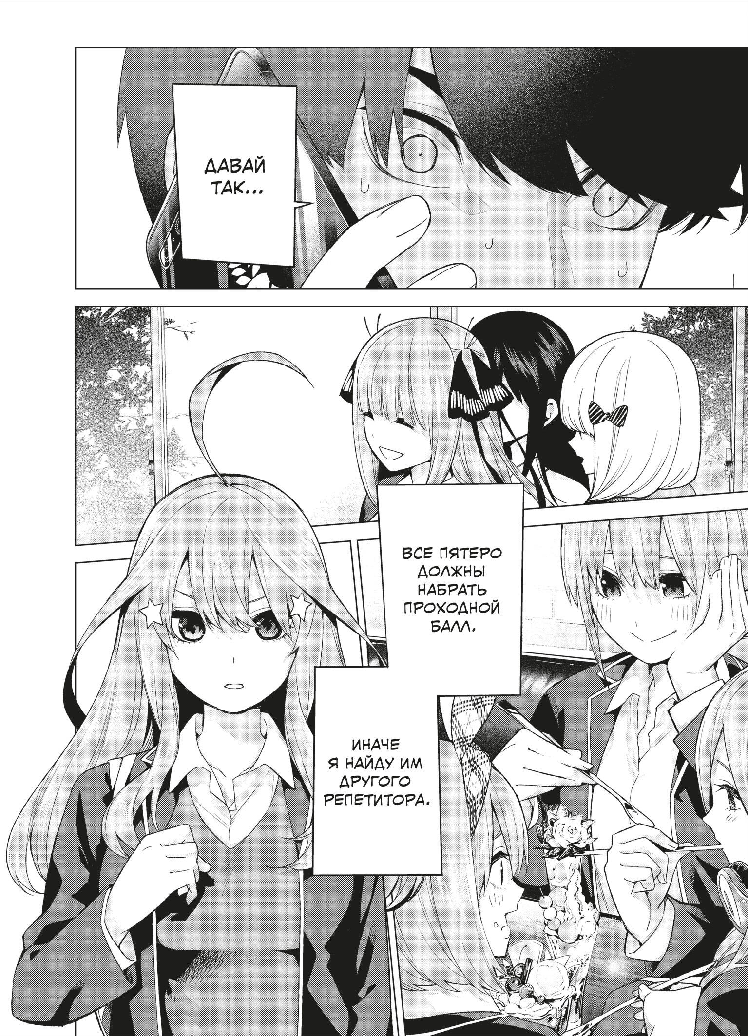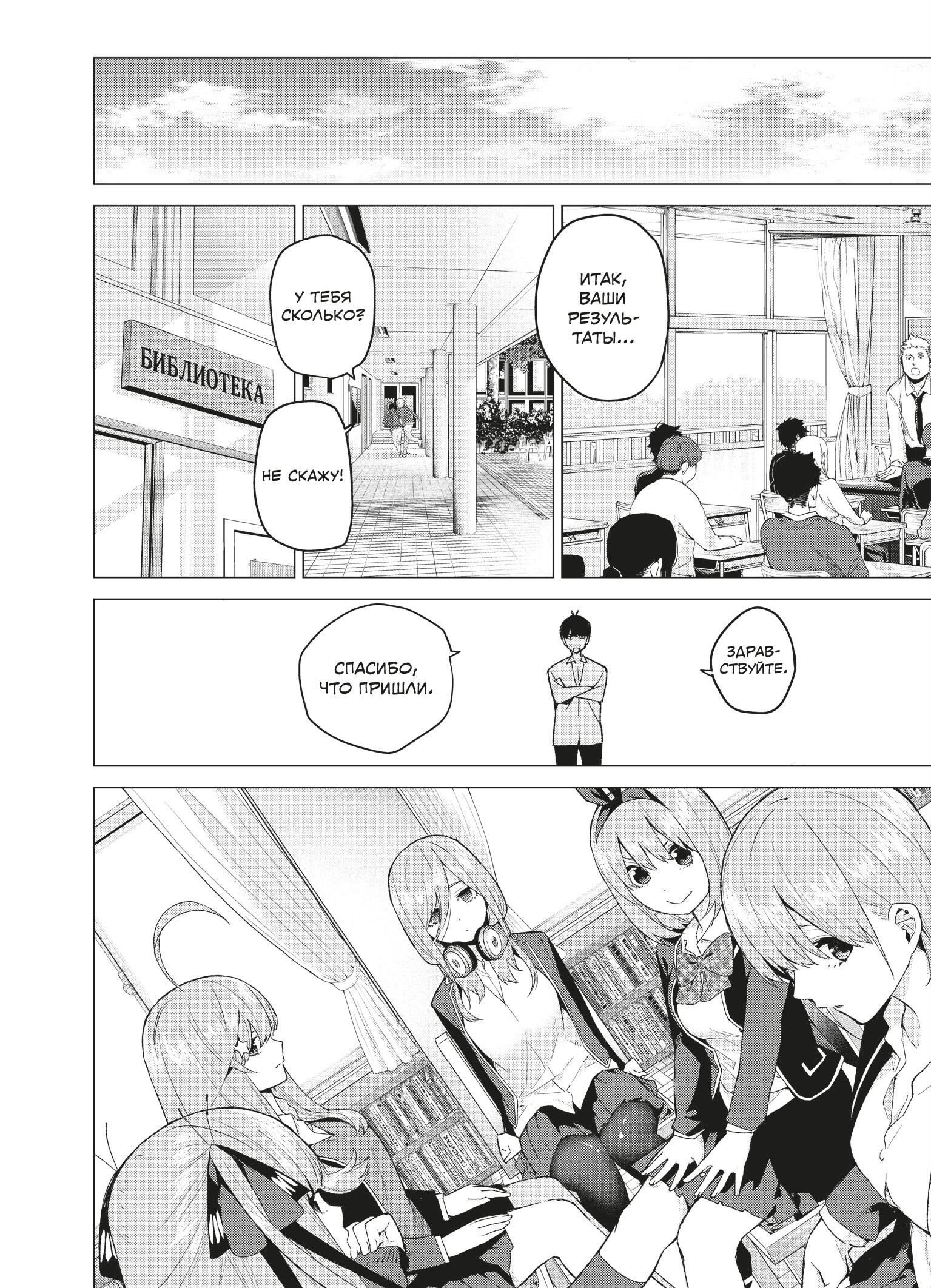 Накануне своей свадьбы Футаро Уэсуги вспоминает знакомство с любимой. В те времена он учился в старшей школе и отчаянно нуждался в деньгах. Когда ему предложили побыть репетитором у некой девушки из богатой семьи, он с радостью схватился за возможность подзаработать. Но вот сюрприз - его ученицами оказались не одна, не две, а целях пять девушек: пять близняшек, да таких хорошеньких, что глаз не оторвать... На одной из этих красавиц он женится - но вот на ком именно?| Издательство | ООО "Издательство "Эксмо" |