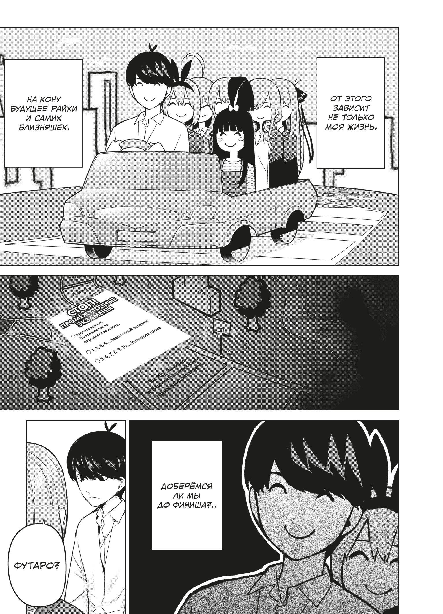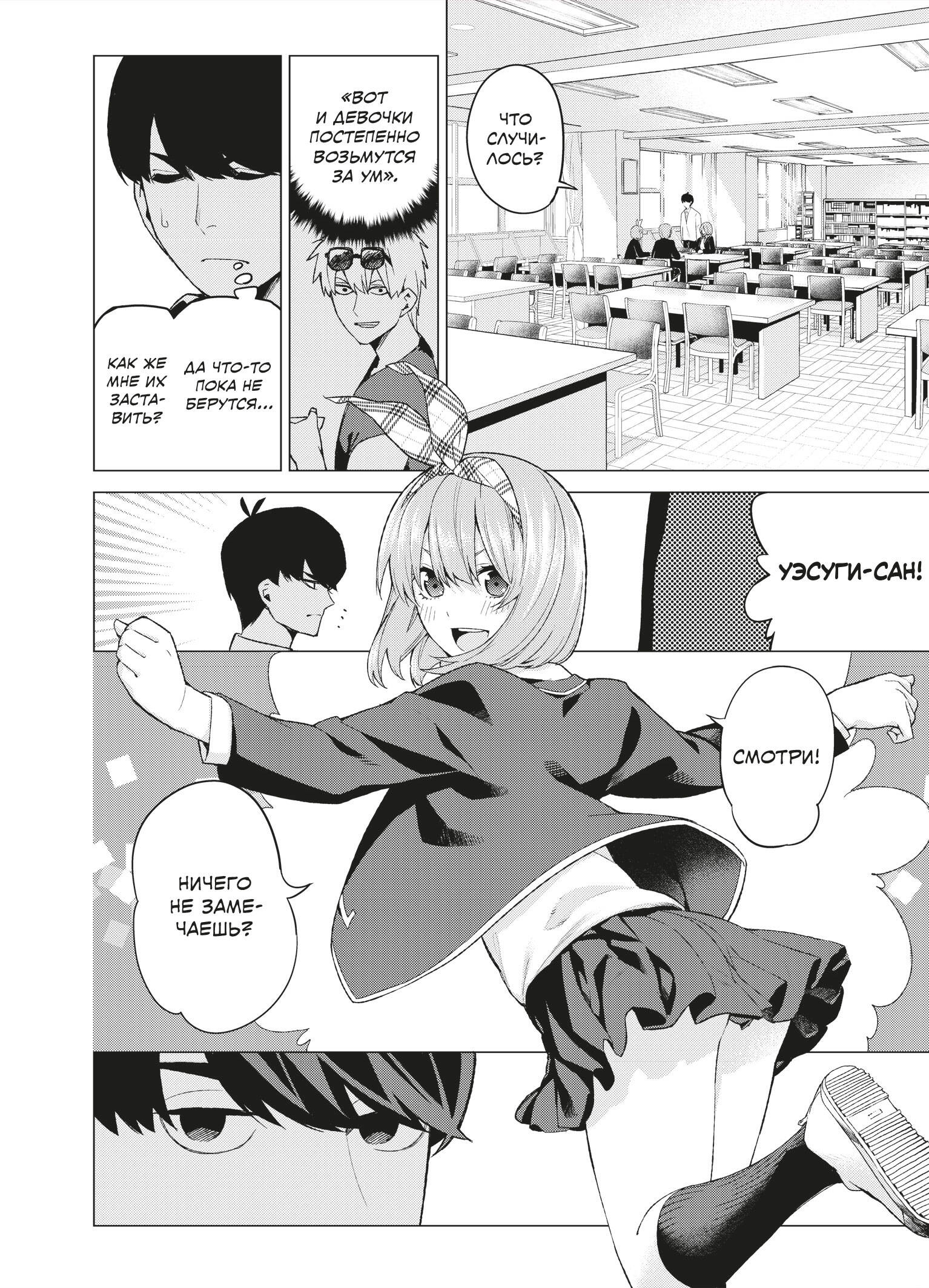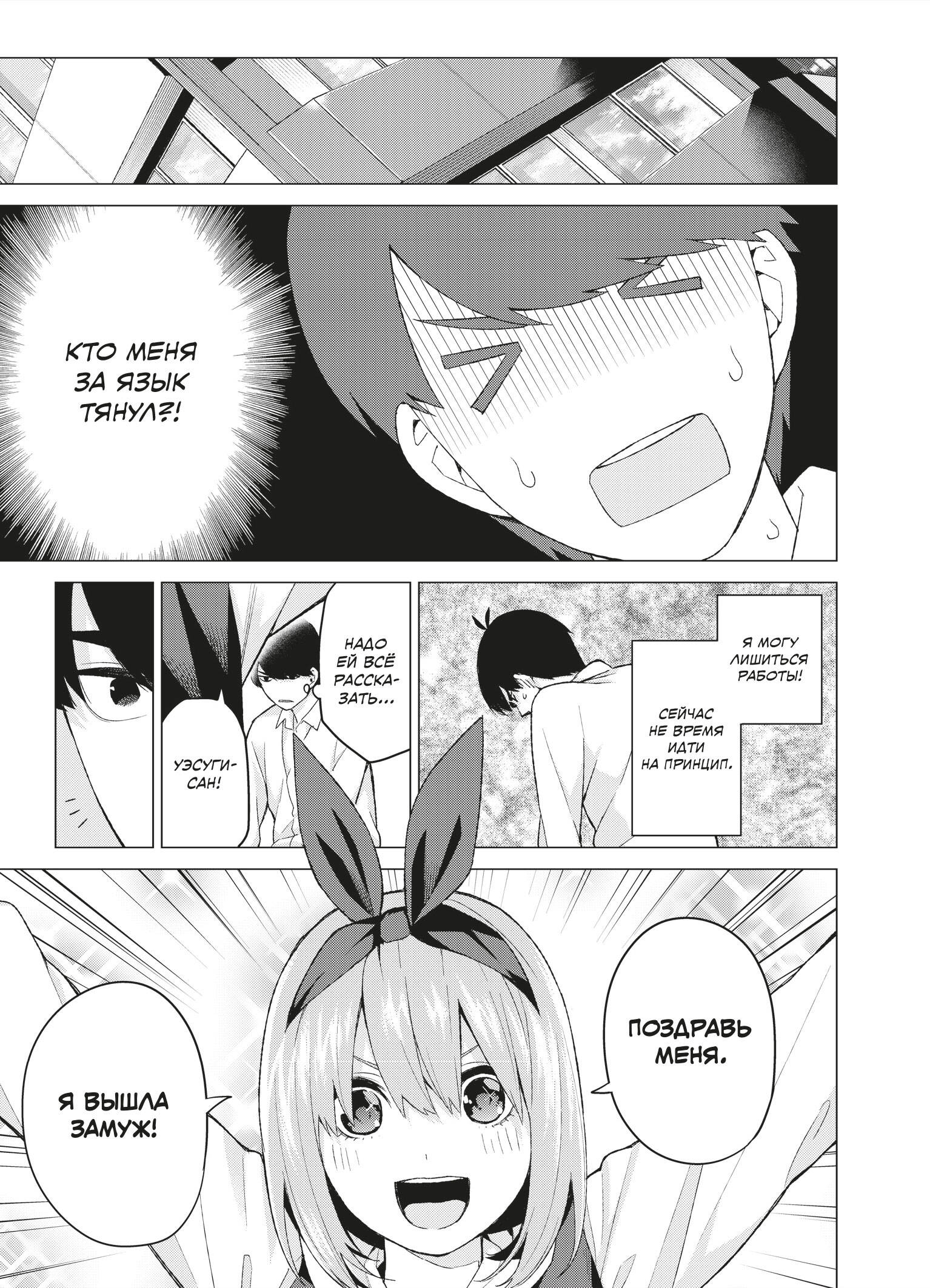 Накануне своей свадьбы Футаро Уэсуги вспоминает знакомство с любимой. В те времена он учился в старшей школе и отчаянно нуждался в деньгах. Когда ему предложили побыть репетитором у некой девушки из богатой семьи, он с радостью схватился за возможность подзаработать. Но вот сюрприз - его ученицами оказались не одна, не две, а целях пять девушек: пять близняшек, да таких хорошеньких, что глаз не оторвать... На одной из этих красавиц он женится - но вот на ком именно?| Издательство | ООО "Издательство "Эксмо" |