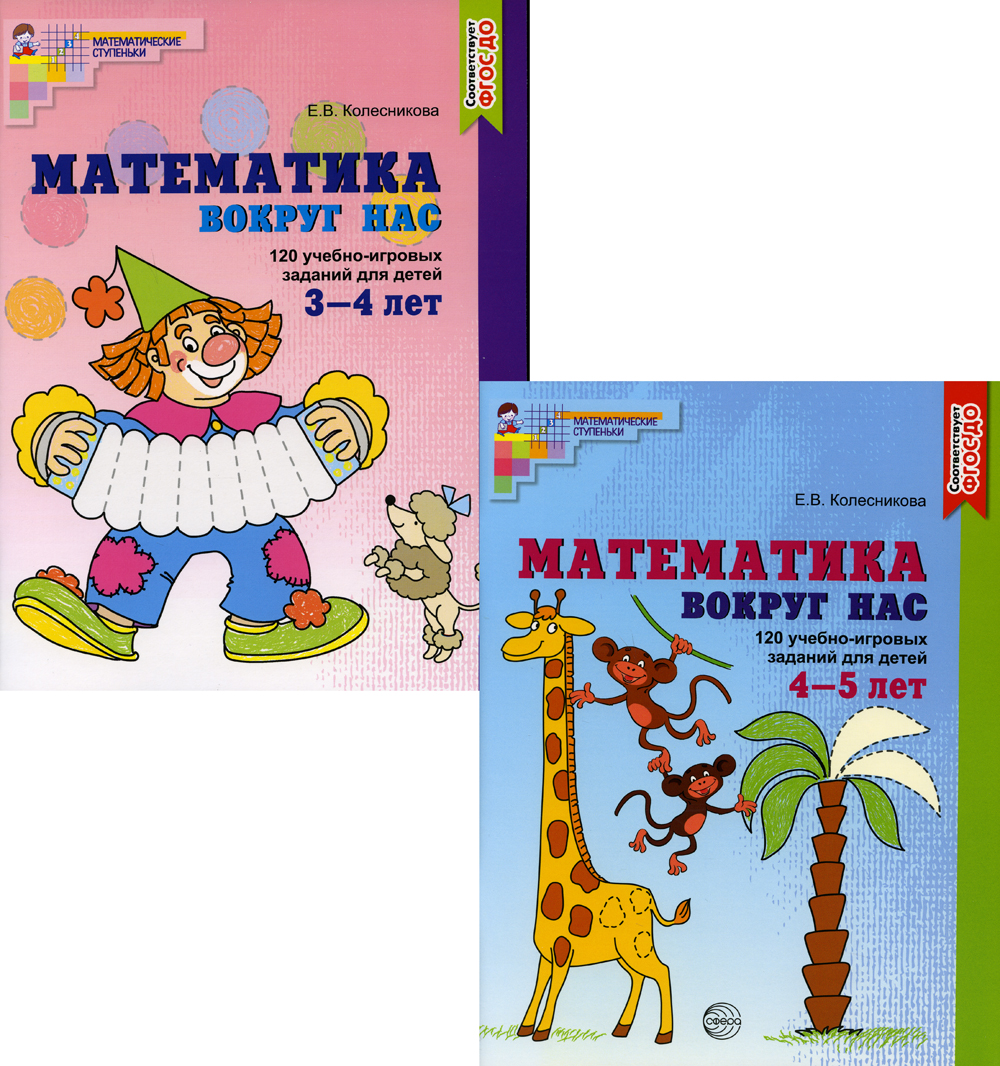 Представляем комплект "Математика и геометрия вокруг нас". В набор вошли книги: - Математика вокруг нас. 120 игровых заданий для детей 4-5 лет. - Математика вокруг нас. 120 игровых заданий для детей 3-4 лет.| Издательство | Творческий центр Сфера |