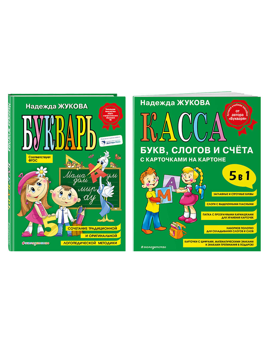 Комплект пособий Надежды Жуковой направлен на пошаговое обучение чтению дошкольников и первоклассников. Состав комплекта: - «Букварь» Надежды Жуковой - классическое учебное пособие. Более 10 лет «Букварь» входит в ТОП-100 розничных продаж. Авторская методика известного логопеда-педагога заключается в изучении слогов, а не отдельно взятых букв. Это позволяет ребёнку быстро научиться читать и легко перейти к письму. - «Касса букв, слогов и счёта» - дидактический материал, который поможет ребёнку научиться различать гласные и согласные, а также складывать из букв слоги и простые слова. Используйте кассу букв, слогов и счёта в качестве приложения к «Букварю», и ваш ребёнок научится читать быстрее своих сверстников!| Издательство | ООО "Издательство "Эксмо" |