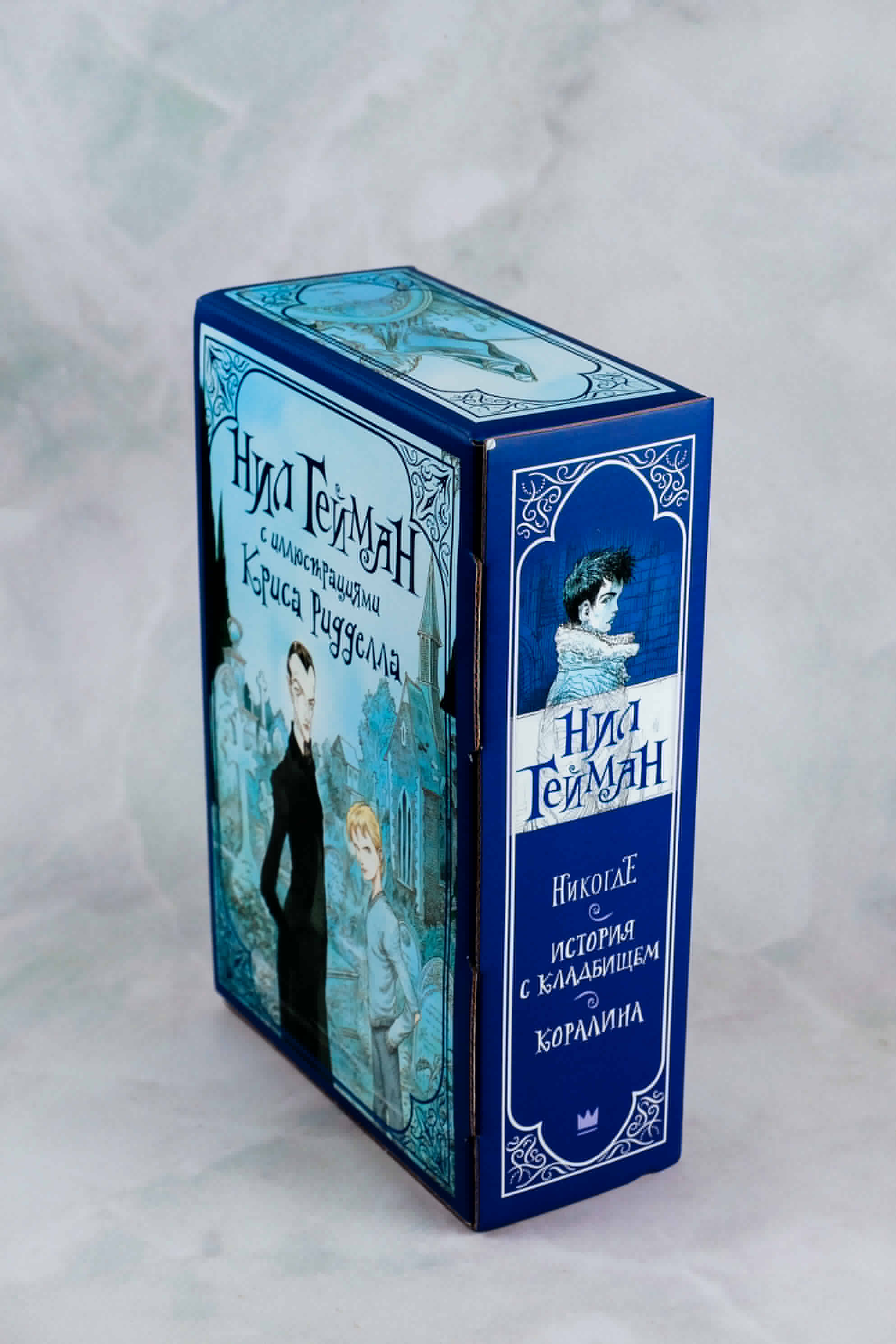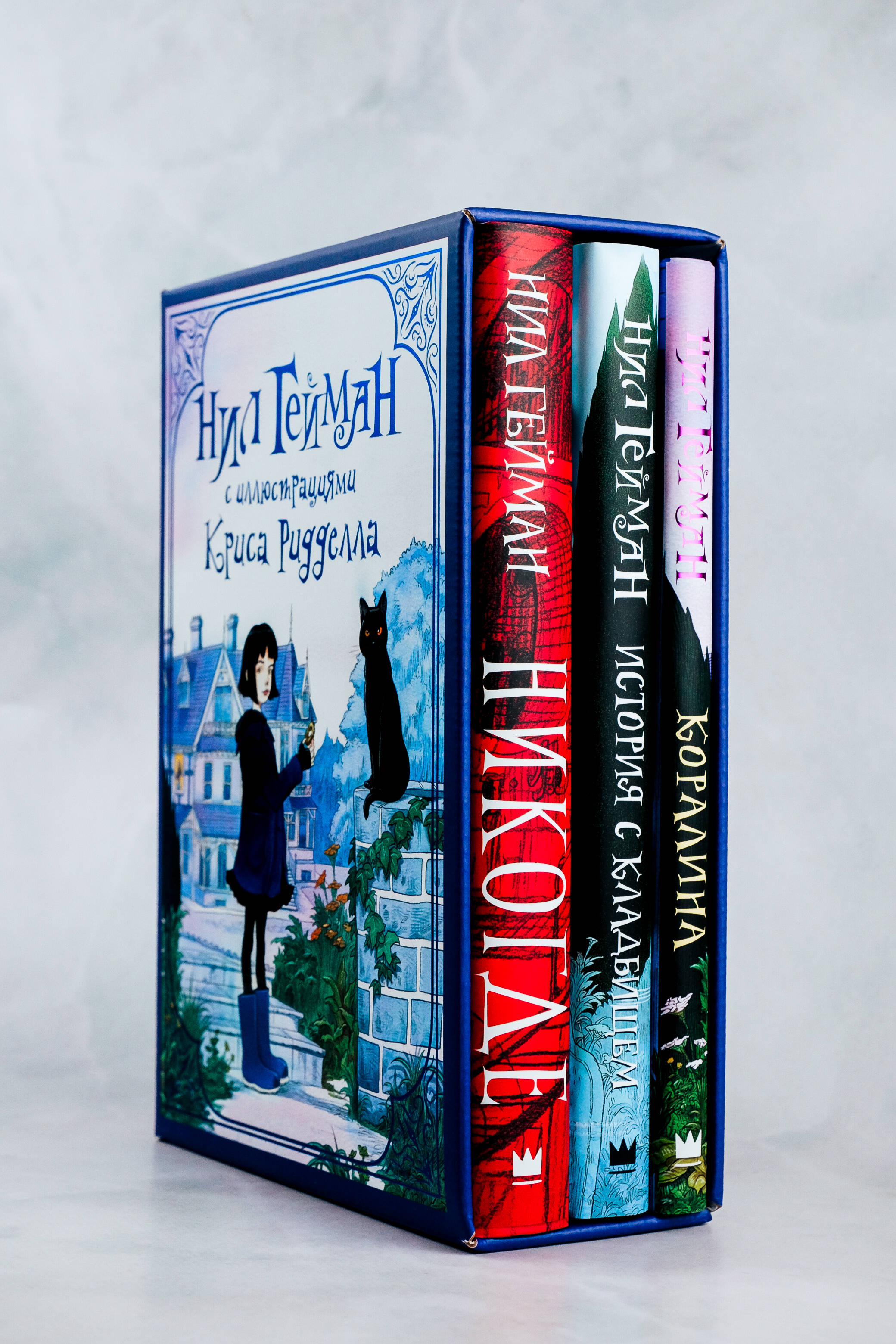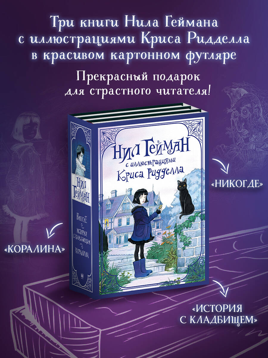 Три книги великолепного Нила Геймана: "Коралина", "История с кладбищем", "Никогде" - с иллюстрациями прославленного Криса Ридделла в красивом открытом картонном футляре. Лучший подарок для страстного читателя!| Издательство | Издательство "АСТ" |