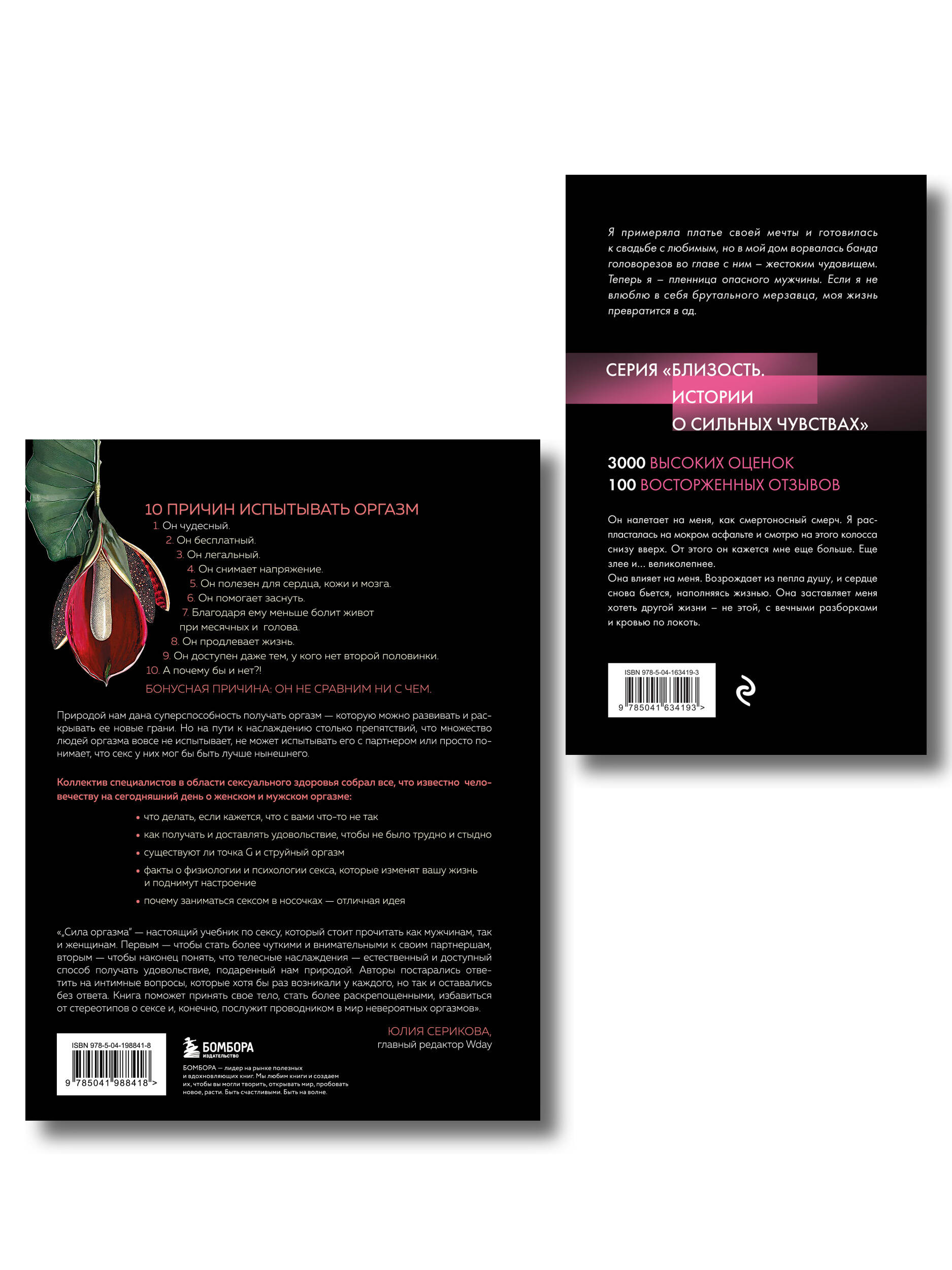 В комплект входит: Книга: «Сила оргазма. Большая книга о суперспособностях, которые может открыть в себе каждый» Оргазм - это подаренная нам природой суперспособность, которую можно развивать и раскрывать ее новые грани. Но на пути к наслаждению столько препятствий, что множество людей оргазма вовсе не испытывает, не может испытывать его с партнером или просто понимает, что секс у них мог бы быть лучше нынешнего. Коллектив специалистов в области сексуального здоровья собрал все, что известно человечеству на сегодняшний день о женском и мужском оргазме, в простое и дружелюбное руководство. Из этой книги вы узнаете: • что делать, если кажется, что с вами что-то не так; • как получать и доставлять удовольствие, чтобы не было трудно и стыдно; • существуют ли точка G и струйный оргазм; • почему заниматься сексом в носочках - отличная идея; • факты о физиологии и психологии секса, которые изменят вашу жизнь и поднимут настроение. Книга: «Невинная пленница» Я примеряла платье своей мечты и готовилась к свадьбе с любимым, но в мой дом ворвалась банда головорезов во главе с ним - жестоким чудовищем. Теперь я - пленница опасного мужчины. Если я не влюблю в себя брутального мерзавца… моя жизнь превратится в ад.| Издательство | ООО "Издательство "Эксмо" |