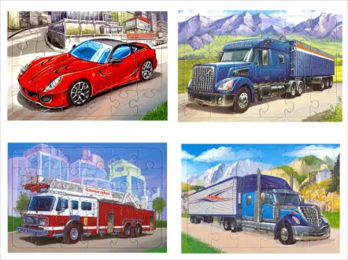 Комплект пазлов "Автомобили". В наборе 4 штуки.