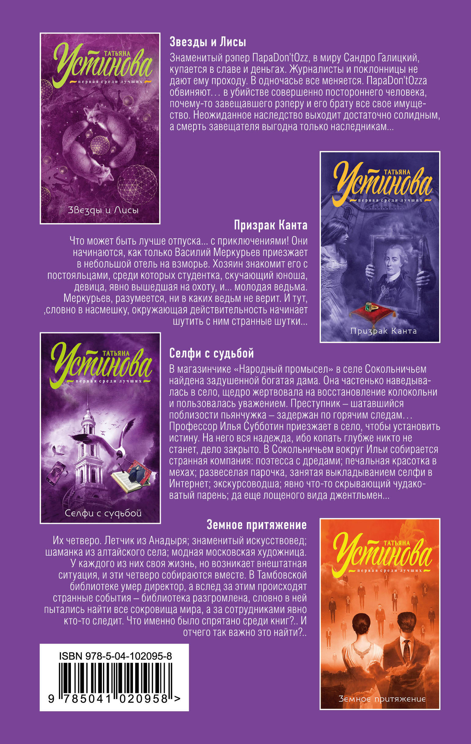 В комплект входят книги «Звезды и Лисы», «Призрак Канта», «Селфи с судьбой», «Земное притяжение». Татьяна Устинова - один из топовых авторов современной российской прозы, обладатель двух премий «Электронная буква», лауреат «ТЭФИ» в номинации «Сценарист телевизионного фильма». «Первая среди лучших» - так называют Татьяну Витальевну, и это не просто остроумный эпитет, а звание, подтвержденное десятками написанных романов, успешными экранизациями и, конечно, любовью многочисленных поклонников ее творчества.| Издательство | ООО "Издательство "Эксмо" |