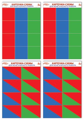 Комплект познавательных мини-плакатов. Карточки-схемы для фонетического разбора 4 листа А4+, текст на обороте