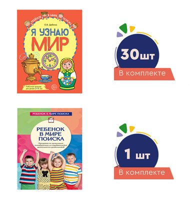 Комплект из методического пособия и рабочей тетради поможет решить задачи образовательной области «Познавательное развитие» в соответствии с федеральным государственным образовательным стандартом дошкольного образования (ФГОС ДО). В пособиях представлены задания и практикумы по ознакомлению с рукотворным миром, природой и историей происхождения предметов. Комплект состоит из: Ребенок в мире поиска. Программа по организации познавательно-исследовательской деятельности - 1шт Я узнаю мир: Рабочая тетрадь для детей 3-4 лет. ЦВЕТНАЯ - 30шт| Издательство | М.: ТЦ СФЕРА |