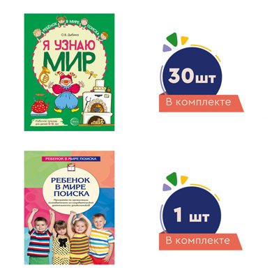 Комплект из методического пособия и рабочей тетради поможет решить задачи образовательной области «Познавательное развитие» в соответствии с федеральным государственным образовательным стандартом дошкольного образования (ФГОС ДО). В пособиях представлены задания и практикумы по ознакомлению с рукотворным миром, природой и историей происхождения предметов. Комплект состоит из: Ребенок в мире поиска. Программа по организации познавательно-исследовательской деятельности - 1шт Я узнаю мир: Рабочая тетрадь для детей 5-6 лет. ЦВЕТНАЯ- 30шт| Издательство | М.: ТЦ СФЕРА |