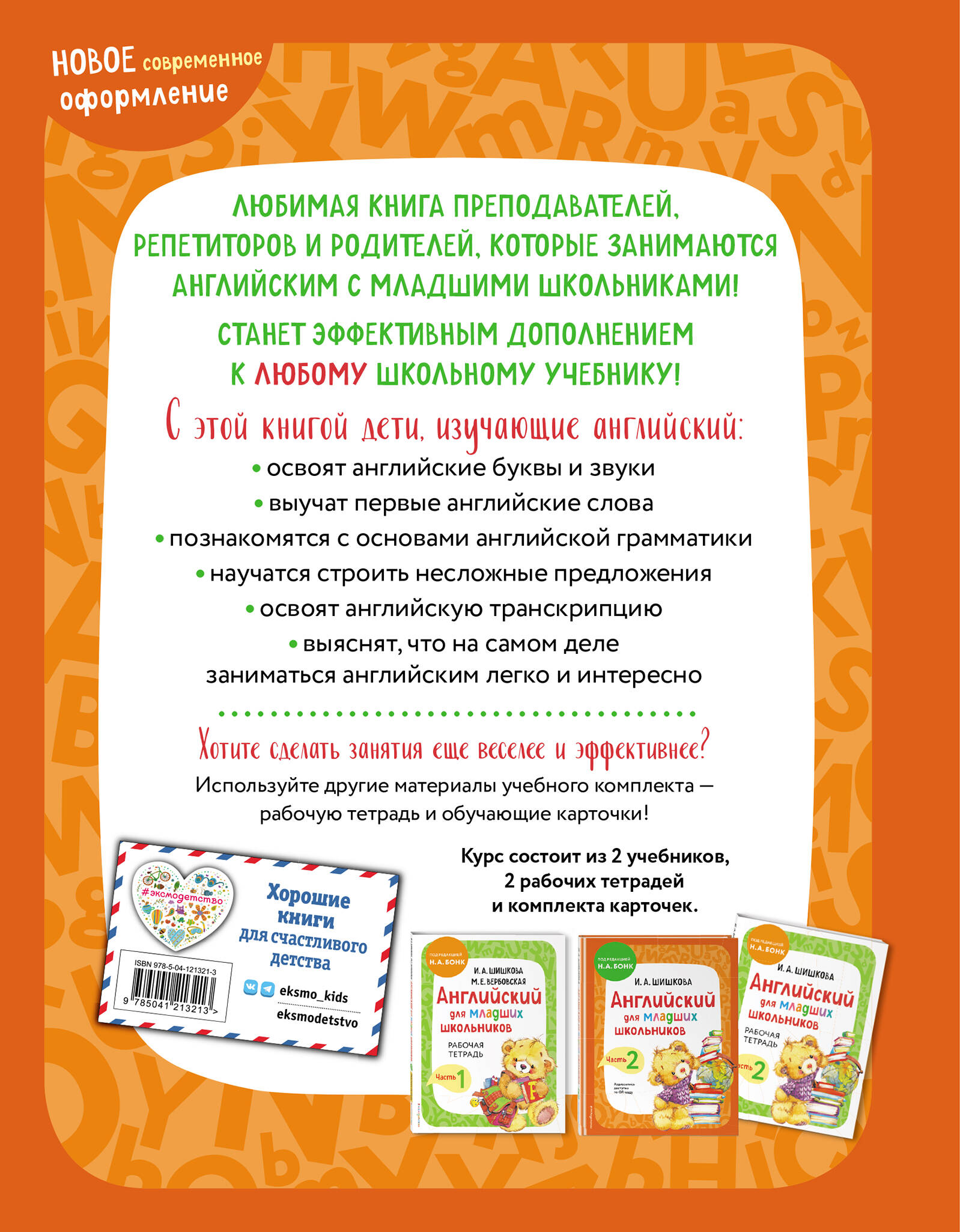 В комплект по английскому языку автора И. А. Шишковой входят книги «Английский для младших школьников. Учебник. Часть 1» и «Английский для младших школьников. Учебник. Часть 2». Первая часть учебника «Английский для младших школьников» знакомит детей с буквами и звуками английского языка, а также помогает самостоятельно освоить важную тему - научиться читать на английском языке. Основы грамматики объясняются именно для детей - несложно, коротко, понятным языком. Множество примеров и упражнений помогут запомнить новые слова и конструкции, эффективно их отработать и научиться правильно применять. Вторая часть учебника учит уверенно строить простые предложения, рассказывать о себе и своих родных, разбираться в простых грамматических конструкциях. Авторская методика Ирины Шишковой помогает детям легко осваивать английский язык, постепенно переходя от простого к сложному. Аудиозапись доступна по QR-коду. Она поможет детям поставить отличное произношение и научит понимать на слух англоязычную речь.| Издательство | ООО "Издательство "Эксмо" |