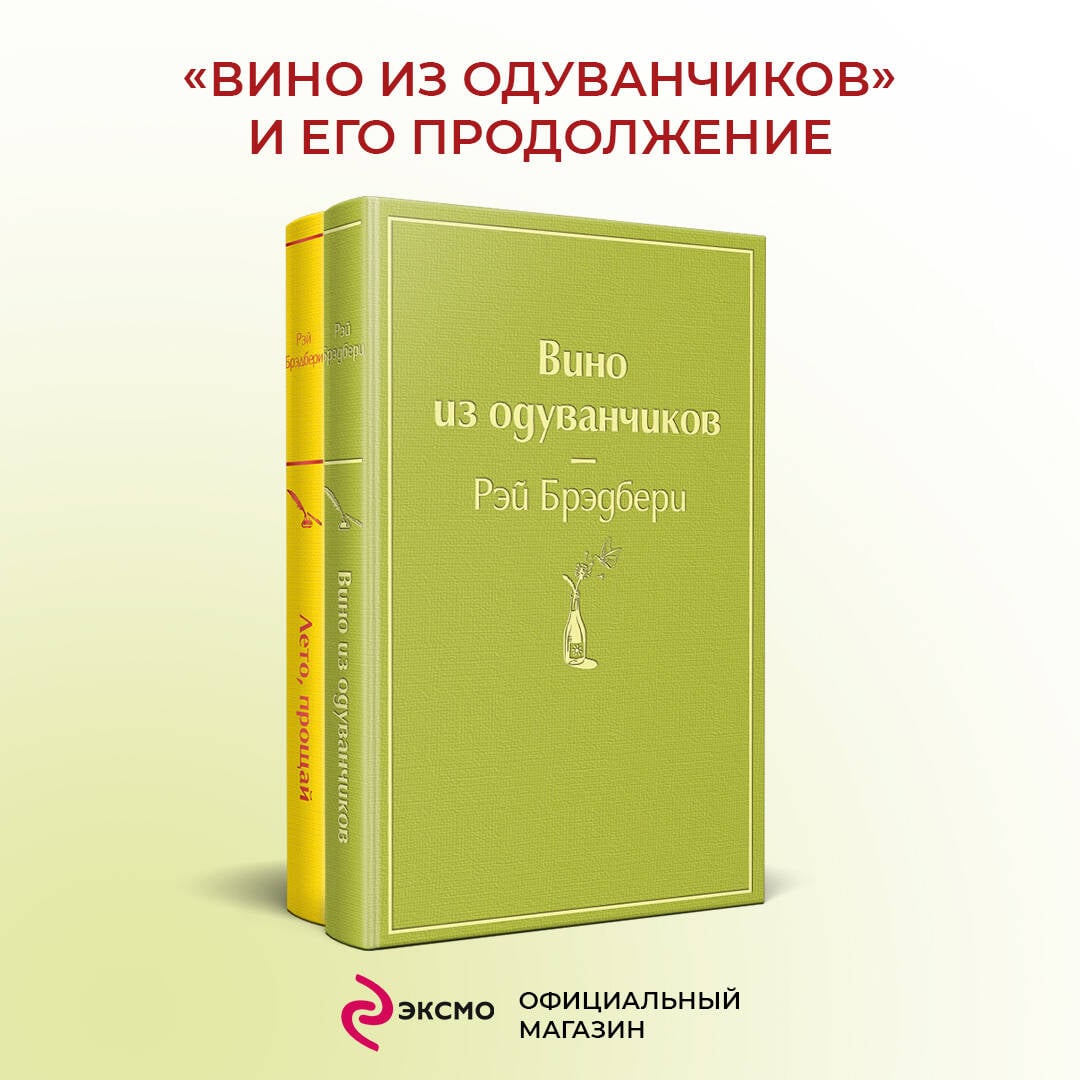 Комплект «Вино из одуванчиков» и его продолжение ( из 2-х книг: «Лето, прощай» и «Вино из одуванчиков»). Гринтаунский автобиографический цикл о лете, о детстве, о приключениях. Где можно провести одно лето в компании с двенадцатилетними мальчишками, лето, когда каждый день совершаются удивительные открытия, лето, наполненное событиями радостными и печальными, загадочными и тревожными. Культовое «Вино из одуванчиков» и его продолжение!| Издательство | ООО "Издательство "Эксмо" |
