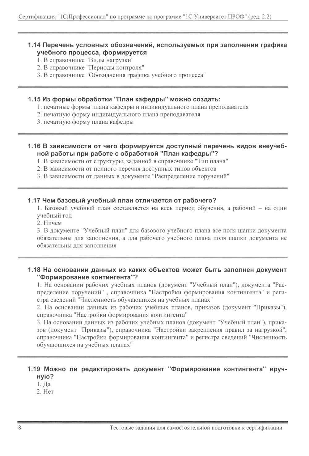 Комплект вопросов сертификационного экзамена по программе "1С:Университет ПРОФ" (ред.2.2) с примерами решений