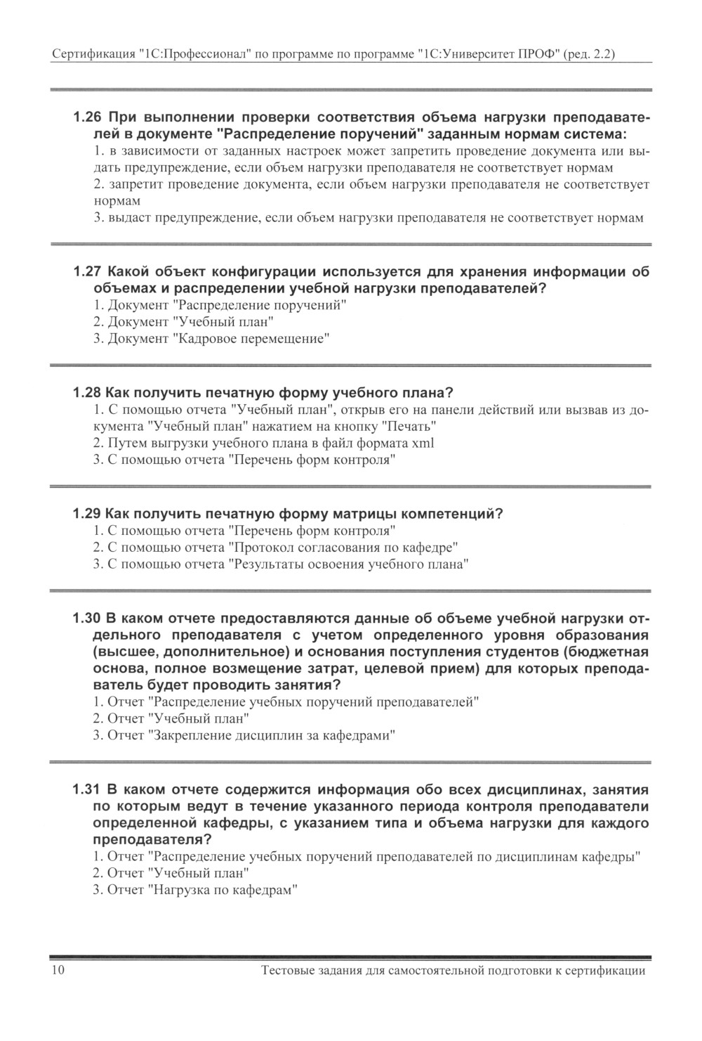 Настоящее пособие содержит комплект вопросов, используемых при проведении автоматизированного сертификационного экзамена "1С:Профессионал" по программе "1С:Университет ПРОФ" (ред. 2.2). Основная цель издания - помочь читателю подготовиться к сдаче сертификационного экзамена по этой программе. Самостоятельная проработка вопросов, приведенных в пособии, позволит читателю систематизировать и углубить свои знания, получить комплексное представление о функциональных возможностях и настройке программы, эффективно используя ее в повседневной деятельности. Издание будет полезно как пользователям, так и специалистам по разработке, внедрению и поддержке прикладных решений на технологической платформе "1С:Предприятие 8". Книга может использоваться преподавателями учебных курсов по программным продуктам системы "1С:Предприятие 8" для обучения и проверки знаний слушателей.| Издательство | 1С-Паблишинг |
