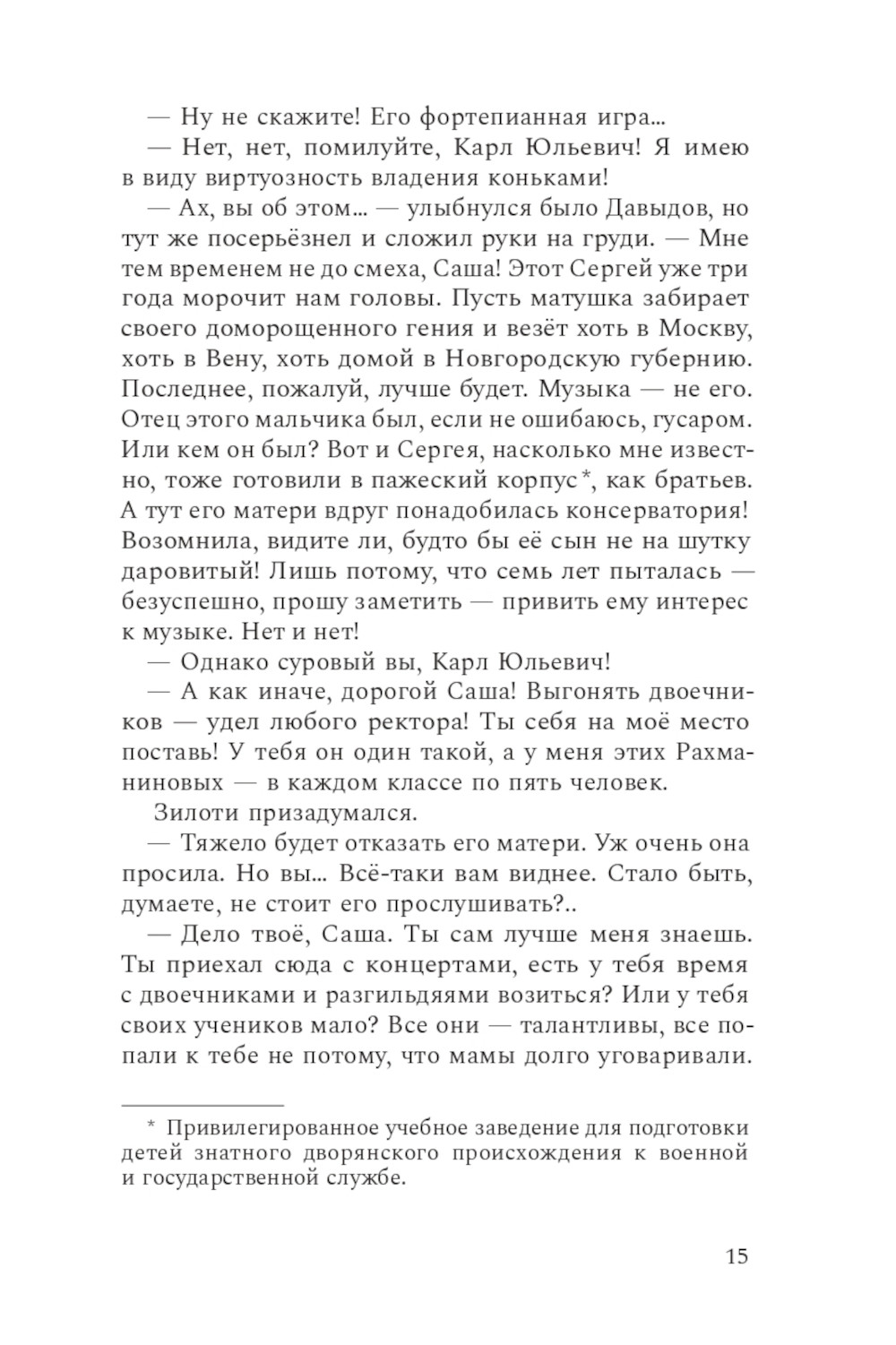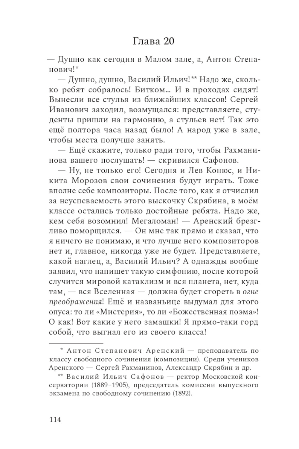 В 1882 году его с большой неохотой принимают в Консерваторию, сомневаясь в способностях провинциального мальчишки. В 1891-м он заканчивает обучение с золотой медалью. Его «дипломную» оперу ставят в Большом театре, её хвалит сам Чайковский. В восемнадцать он влюбляется в жену лучшего друга и посвящает ей свою Первую симфонию, а в двадцать девять - женится на собственной кузине, получив разрешение на этот брак от самого императора. В 1897-м его Первая симфония терпит сокрушительный провал, после которого он вынужден четыре года лечиться от депрессии. В 1917 году после череды триумфов он, знаменитый композитор, пианист и дирижёр, покидает Россию, навеки теряя дом и не в силах остаться там, где разрушено всё, что было этим домом... Чтобы навсегда стать символом русской музыки во всём мире. Сергей Рахманинов писал, что «музыка - это тихая лунная ночь». Музыковеды сравнивают ритм его знаменитых крошечных пауз с ритмом дыхания. Биографический роман Маргариты Мамич - попытка услышать за этой тишиной живой голос. Эта книга продолжает серию книг о выдающихся деятелях искусства. В ней уже вышли популярные произведения об Амедео Модильяни, Эгоне Шиле, Иерониме Босхе и Василии Кандинском.| Издательство | ИД Мещерякова |