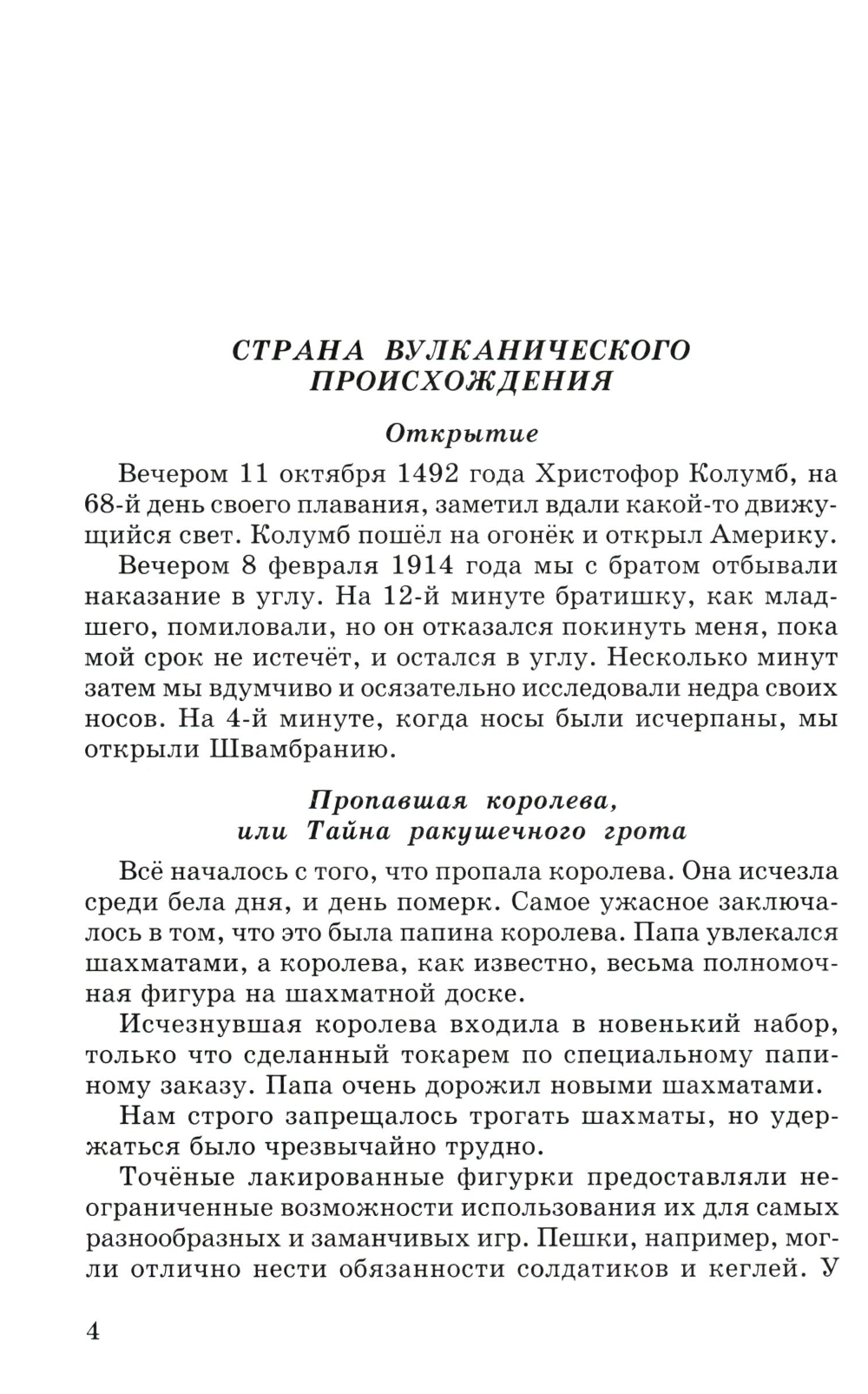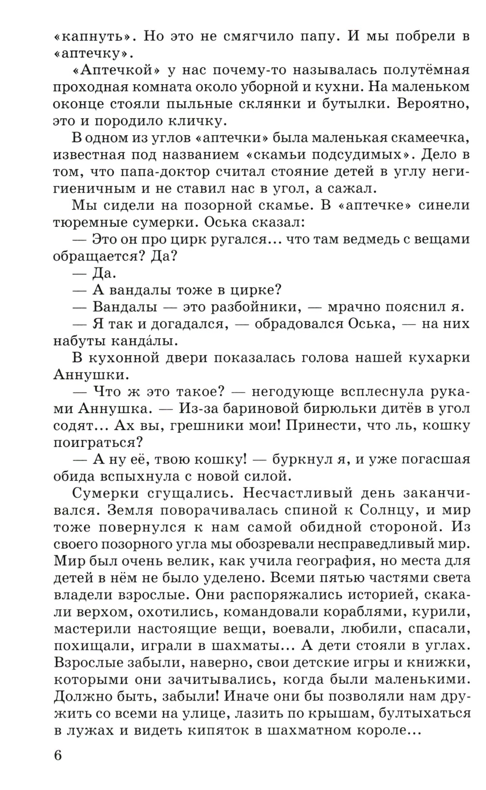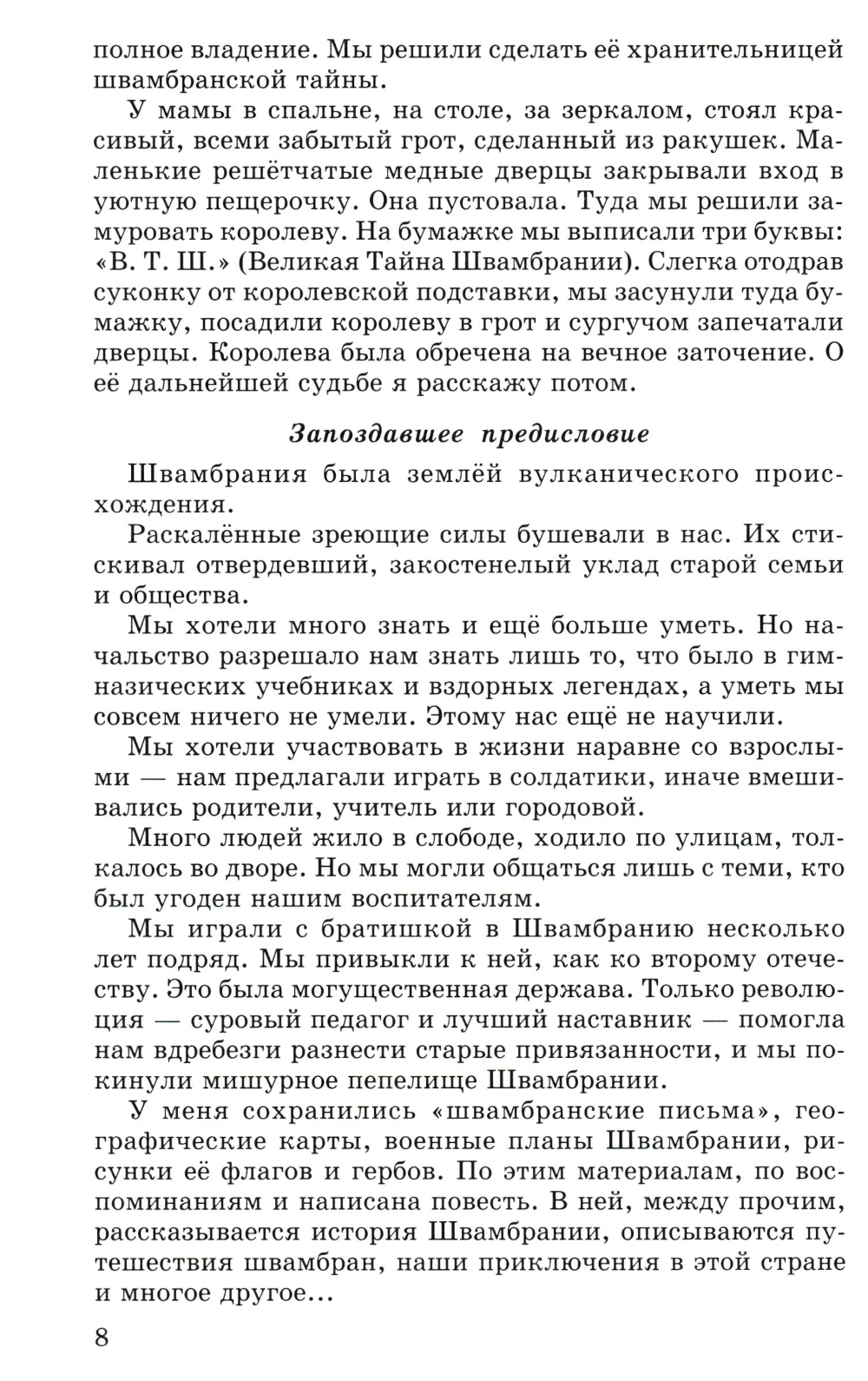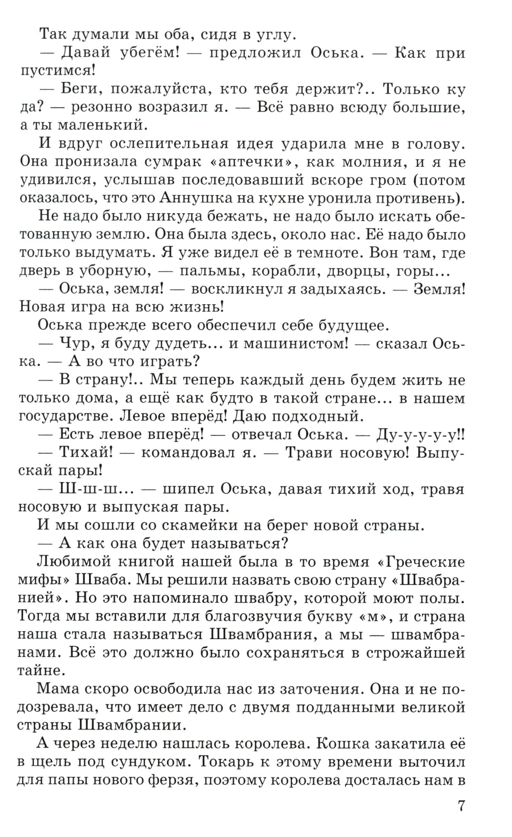 Детство и гимназические годы Льва Абрамовича Кассиля совпали с событиями, которые потрясли весь мир: Первая мировая война и революция 1917 года в России. В повести «Кондуит и Швамбрания» автор обращается к собственному детскому опыту и рассказывает о событиях, в которых участвовал он сам и его семья. Там есть все: и захватывающие дух приключения, и уморительные проделки, и замечательные исторические зарисовки России начала века. В конце зимы 1914 года отбывающие наказание в углу братья-гимназисты Леля и Оська неожиданно для самих себя открывают Великое государство Швамбранское, расположенное на материке Большого Зуба населяют его героями и играют в эту волшебную игру много лет. А еще это рассказ про гимназистов и их школьную жизнь, про проказы и шалости... Очаровательный и неповторимый юмор Льва Кассиля наиболее полно показал себя именно в этой повести. Для среднего школьного возраста.| Издательство | Искателькнига |