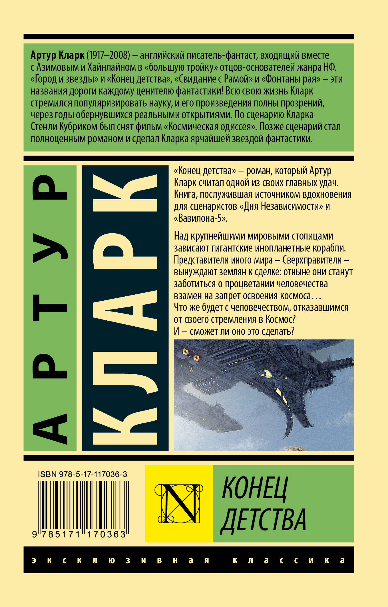 "Конец детства" - роман, который Артур Кларк считал одной из своих главных удач. Книга, послужившая источником вдохновения для сценаристов "Дня Независимости" и "Вавилона-5". Над крупнейшими мировыми столицами зависают гигантские инопланетные корабли. Представители иного мира - Сверхправители - вынуждают землян к сделке: отныне они станут заботиться о процветании человечества взамен на запрет освоения космоса… Что же будет с человечеством, отказавшимся от своего стремления в Космос? И - сможет ли оно это сделать?| Издательство | Издательство "АСТ" |