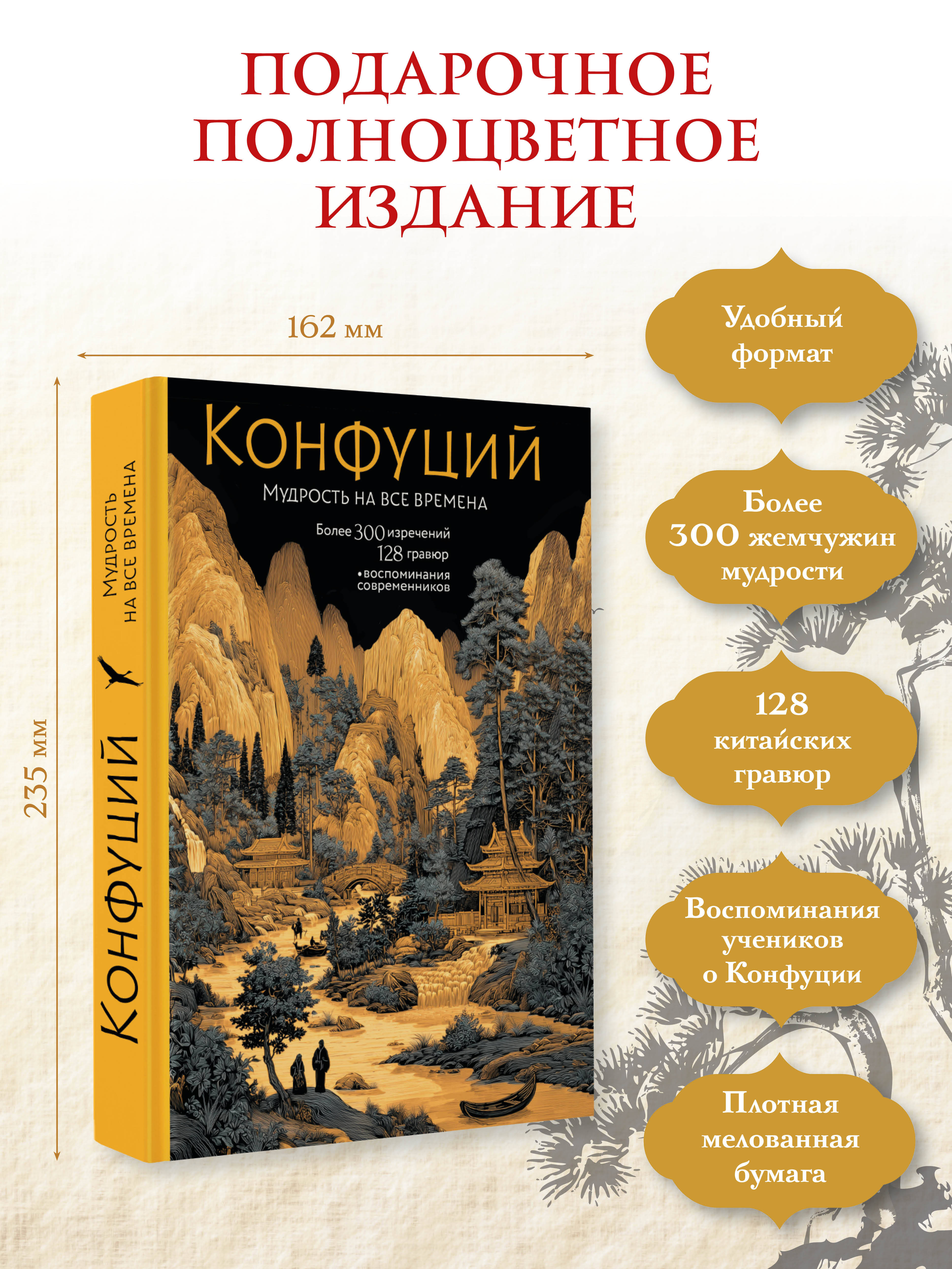 Учение Конфуция, основанное на человеколюбии, добродетели, верности традициям, мудрости и искренности, было распространено в Китае подобно учению Будды в Индии, а само конфуцианство имело статус государственной идеологии до начала XX века и даже называлось религией. В этом подарочном издании представлено более 300 философских изречения Конфуция из самой почитаемой книги конфуцианства - "Беседы и суждения", в профессиональном переводе П.С. Попова (1842-1913), а также воспоминания о Конфуции его учеников. Жемчужины восточной мудрости гармонично дополняют 128 классических китайских гравюр. Прикоснитесь к бессмертной душе Учителя, который уже более 2000 лет передаёт знания всё новым поколениям читателей, вдохновляя и поддерживая каждого из них на пути к Небу своими лаконичными, но мудрыми словами.| Издательство | Издательство "АСТ" |