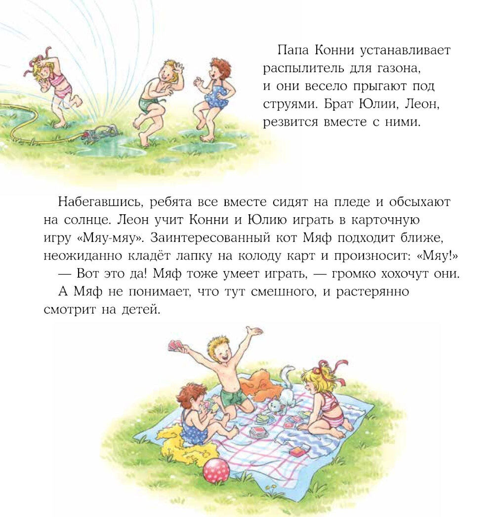 Наконец-то наступило лето, самое чудесное время года! Оно пахнет солнцезащитным кремом и черешней. Конни счастлива, потому что теперь она может ходить босиком, купаться, кататься на водном велосипеде с папой и мамой, ходить на экскурсии, есть мороженое и наслаждаться свежим воздухом.| Издательство | Альпина Паблишер |