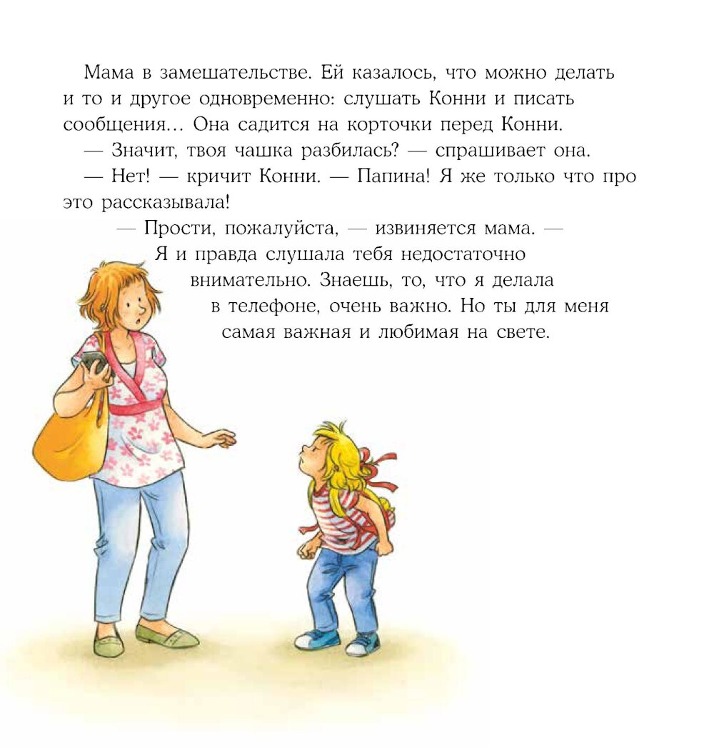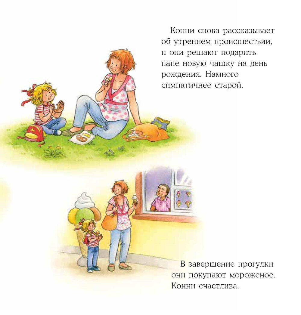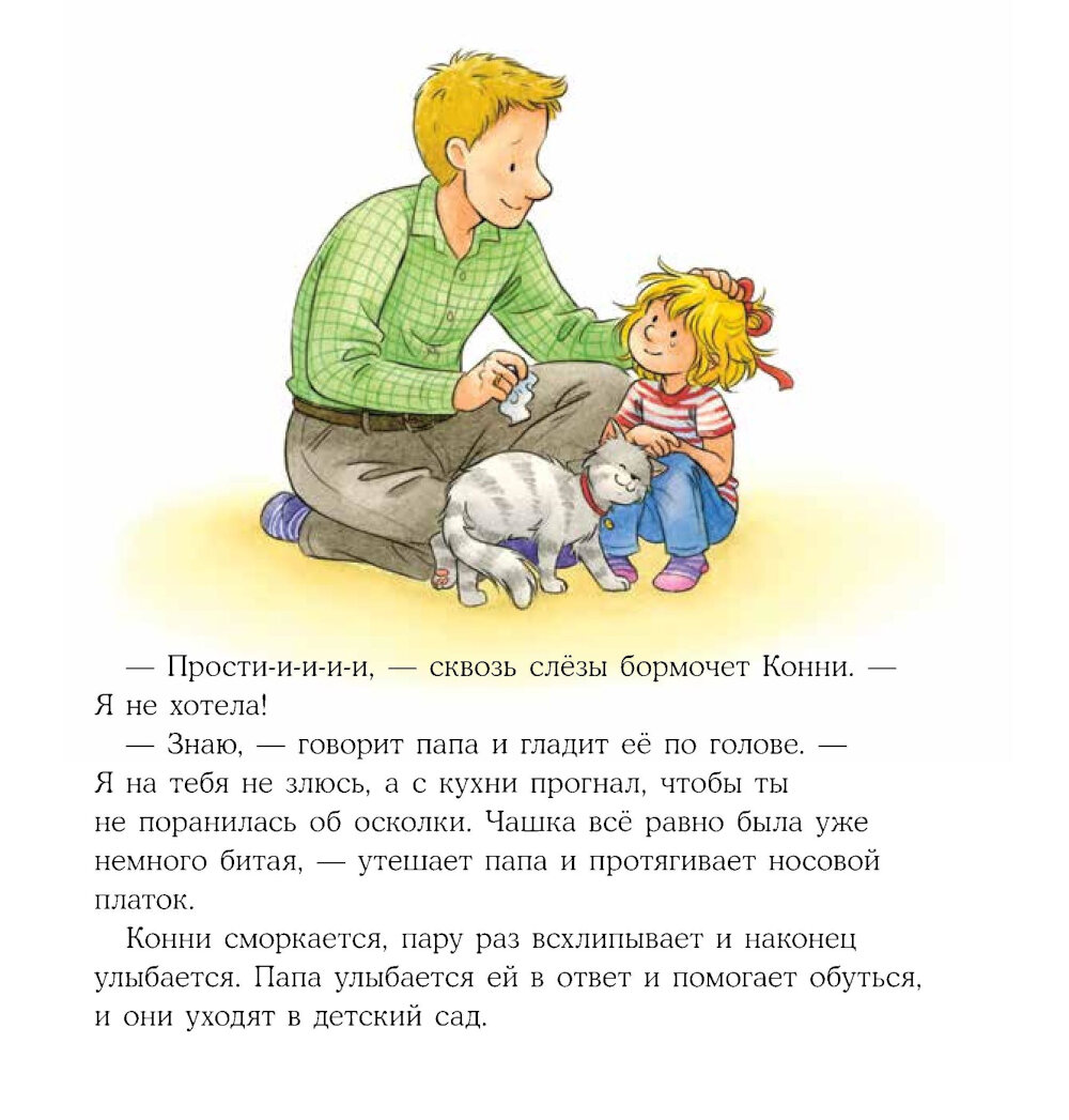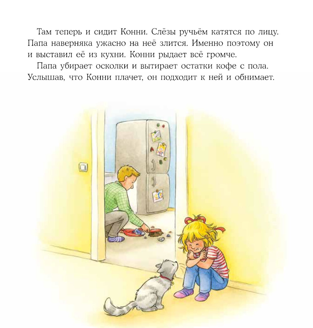 Родителям очень часто кажется, что дети расстраиваются из-за пустяков. Ну не успел нажать кнопку в лифте первым - нажмешь в другой раз. Разбилась чашка с пони - не страшно, купим новую. В своем стремлении взбодрить малыша мы часто обесцениваем его чувства, а ведь для него каждое происшествие важно, каждое нарушение плана - это катастрофа мирового масштаба. Наша с вами родительская задача дать ребенку поддержку и показать, каким способами можно справляться с разочарованием, расстройством, гневом. А заодно вдохновить на поиск решений в сложных ситуациях. У Конни день не задался с самого утра: разбилась папина чашка, мороженое упало прямо в лужу, кот подрал любимого плюшевого мишку. Кто угодно бы расстроился в такой ситуации. Но Конни недолго унывала, потому что родители рядом и готовы были ее выслушать, утешить и помочь в решении проблемы.| Издательство | Альпина Паблишер |