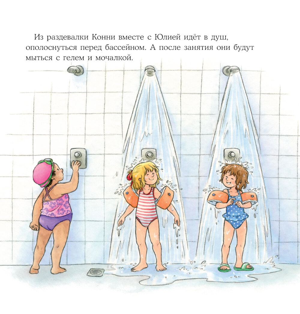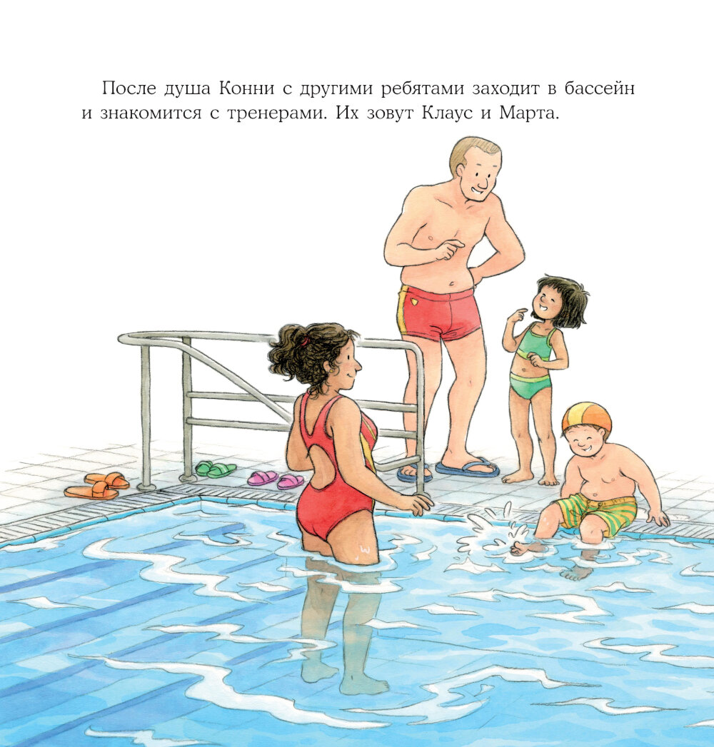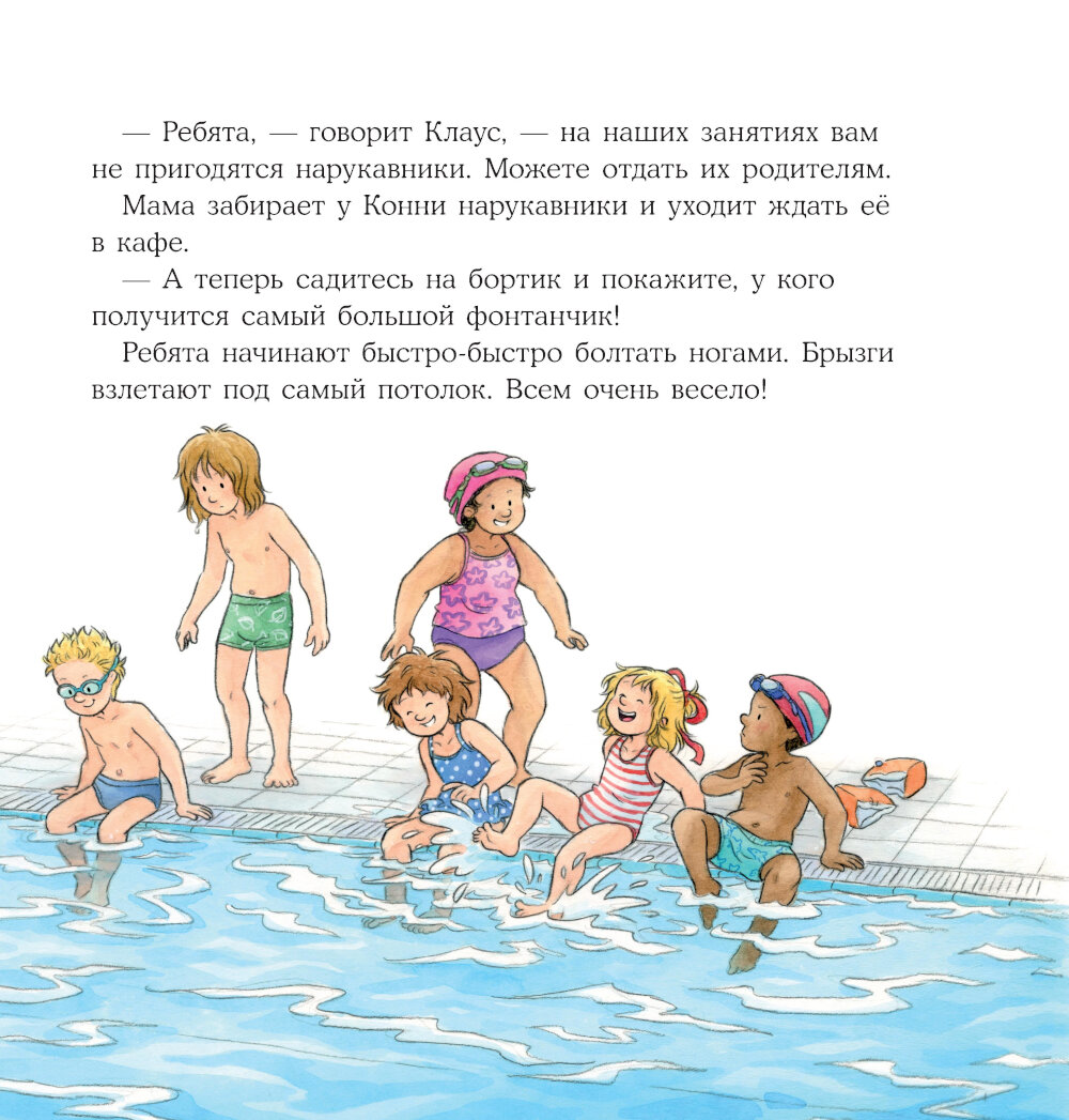 Все дети любят воду. Из новой истории про Конни ребенок узнает, что купаться можно не только в ванной, но и в большом бассейне. Нужно только научиться плавать. Конни вслед за подругой записывается в секцию. Ее ждут новые знакомства, водные забавы и даже красивый значок за спортивные успехи.| Издательство | Альпина Паблишер |