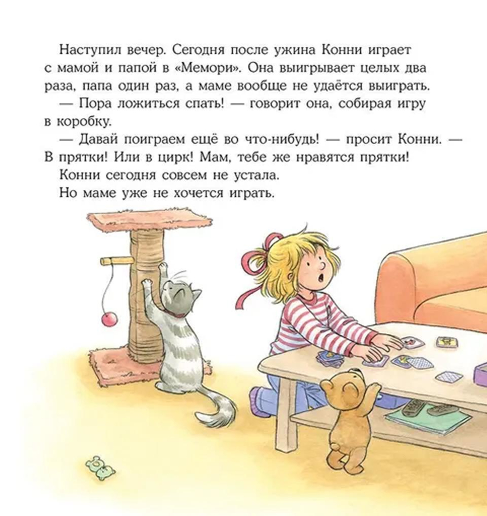 Время ложиться спать, но Конни совсем не хочется в кровать. На улице светло, и она не устала. Как же уложить маленькую непоседу? Знакомая ситуация? Попробуйте вместе с Конни придумать приятные для вашего малыша ритуалы отхода ко сну и научите его засыпать самостоятельно.| Издательство | Альпина Паблишер |