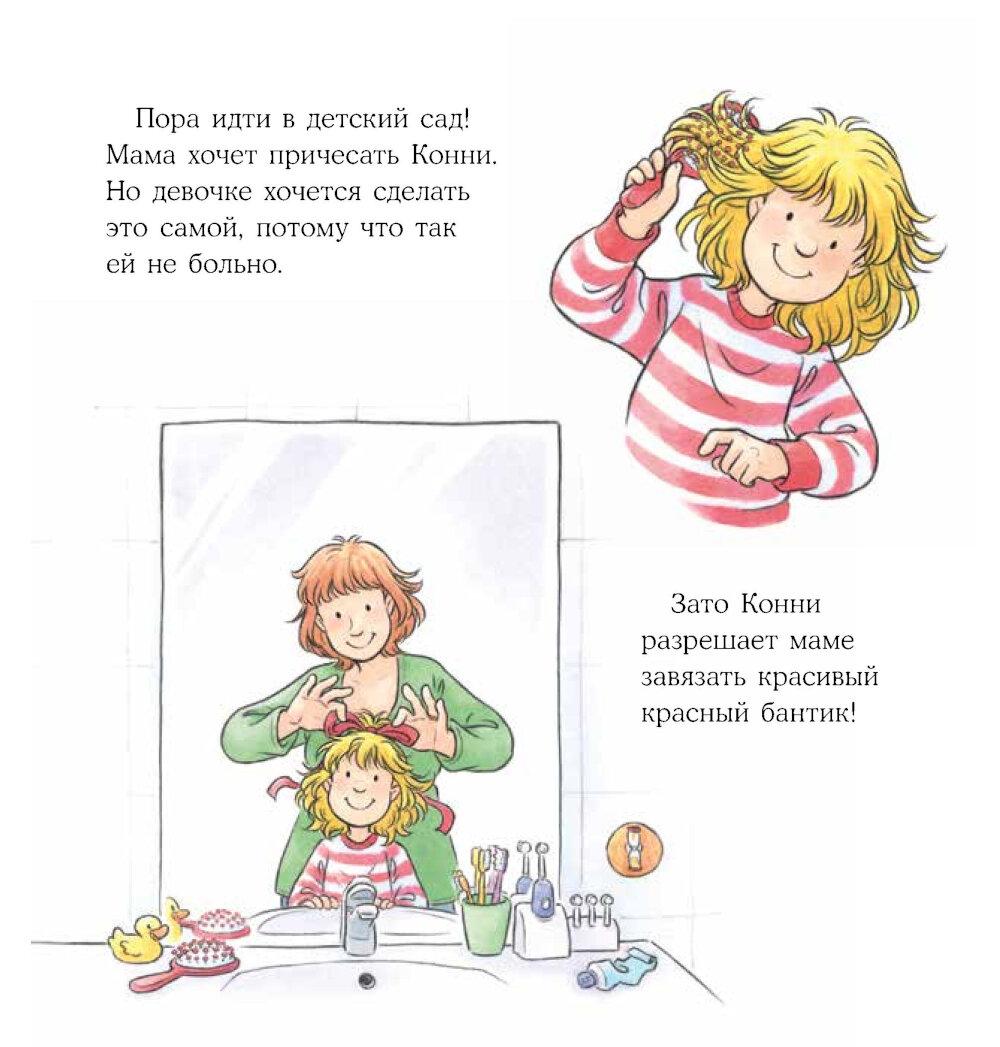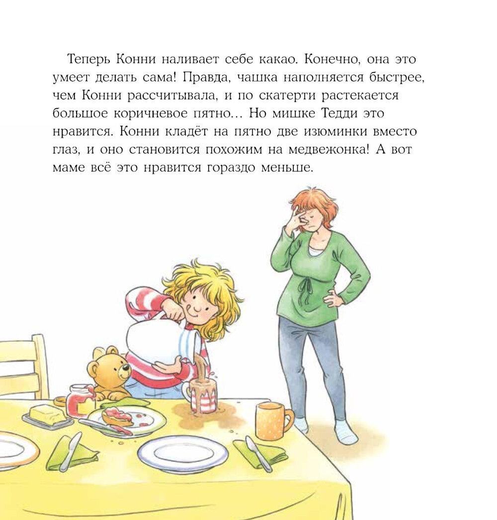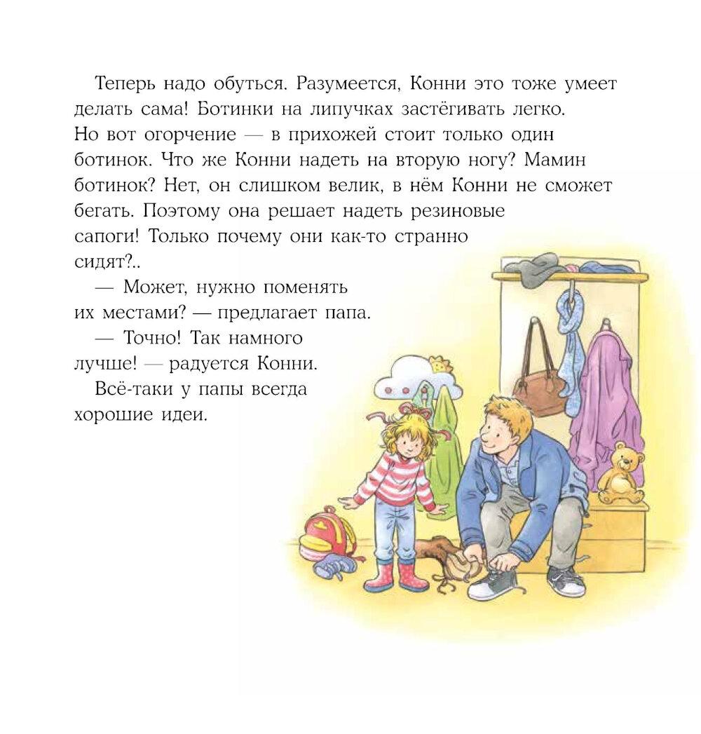 Конни уже большая и многое умеет делать сама! Она сама одевается, готовит завтрак, ходит в детский сад, считает, рисует и помогает маме с покупками. Иногда у неё не всё получается идеально, но Конни не сдаётся! Эта книга учит детей не бояться ошибок, развивает уверенность в себе и желание пробовать новое.