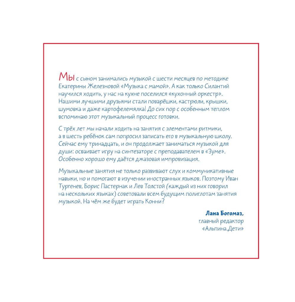 Дом Конни превратился в настоящий концертный зал! С утра до вечера там слышатся разные звуки. А всё потому, что Конни ходит в музыкальную школу и дома учит новые мелодии. Теперь она умеет играть на кастрюлях, сковородках и даже половниках! Но ей нужен настоящий музыкальный инструмент... На чём же будет играть Конни?| Издательство | Альпина Паблишер |