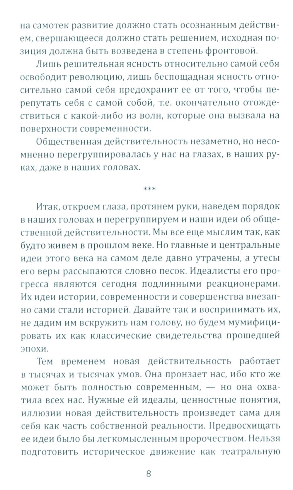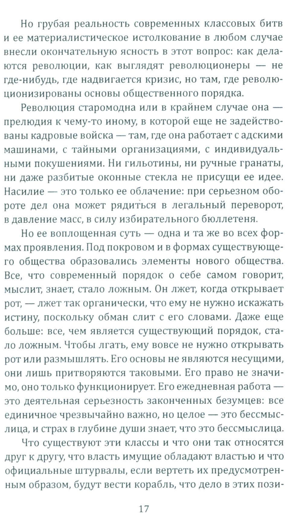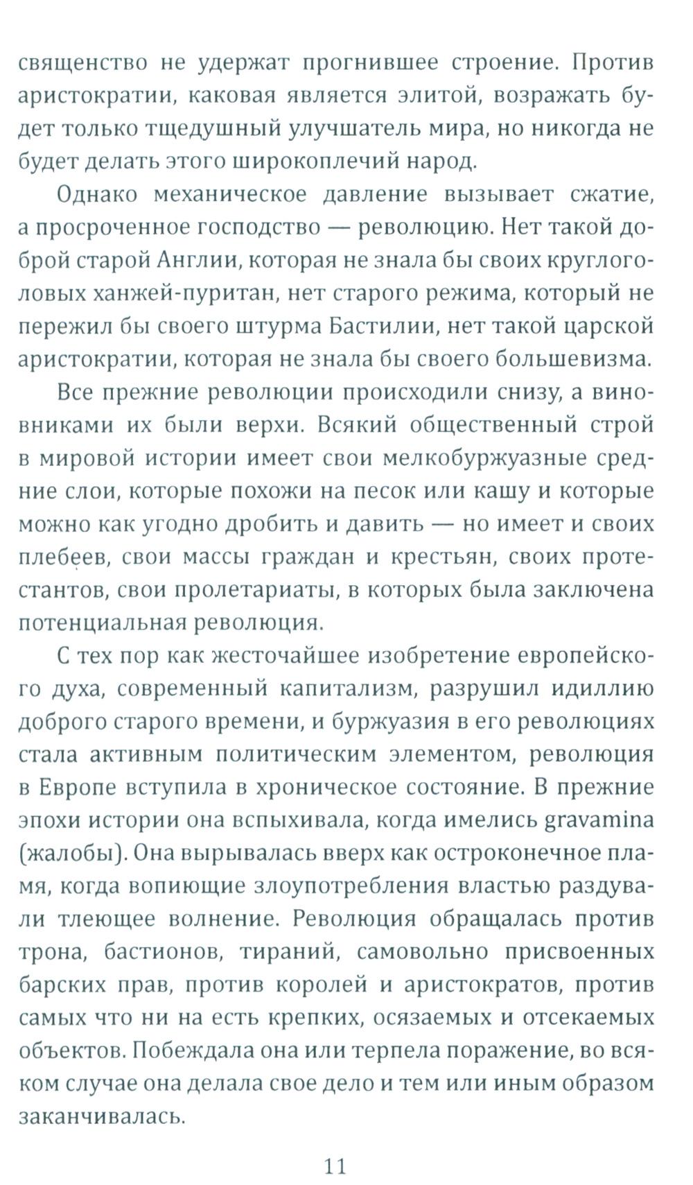 «Эта революция протекает через государство, она формируется в нем и из него обрушивается на общество, - пишет Ханс Фрейер (1887 - 1969), один из главных идеологов "консервативной революции". - Народ пробуждается к политической жизни: он начинает наступление на отжившие принципы, владеющие современностью». «Не изменяя ничего, изменить всё», - таким должен быть лозунг этой революции, а государство должно играть ключевую роль в преодолении противоречий гражданского общества и формировании новой исторической общности - «народа». Об этом же пишет Эрнст Юнгер (1895 - 1998), также один из главных теоретиков консерватизма. Для его работ характерны ориентация на автаркийное развитие страны, идея справедливого общества, основанного на принципе солидарности, сочетание традиционной культуры с передовой технической мыслью.| Издательство | Родина |