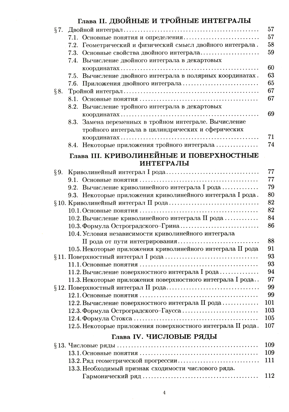 Данный курс лекций адресован учащимся высших учебных заведений, изучающим математику на различных отделениях. Вторая часть содержит необходимый материал по девяти разделам курса высшей математики: дифференциальные уравнения, двойные, тройные, криволинейные и поверхностные интегралы, числовые и степенные ряды, ряды и интеграл Фурье, элементы теории поля и теории функций комплексного переменного, элементы операционного исчисления. Теория, изложенная в пособии, проиллюстрирована большим количеством примеров и задач, что позволит студентам эффективно подготовиться к сдаче зачетов и экзаменов.
