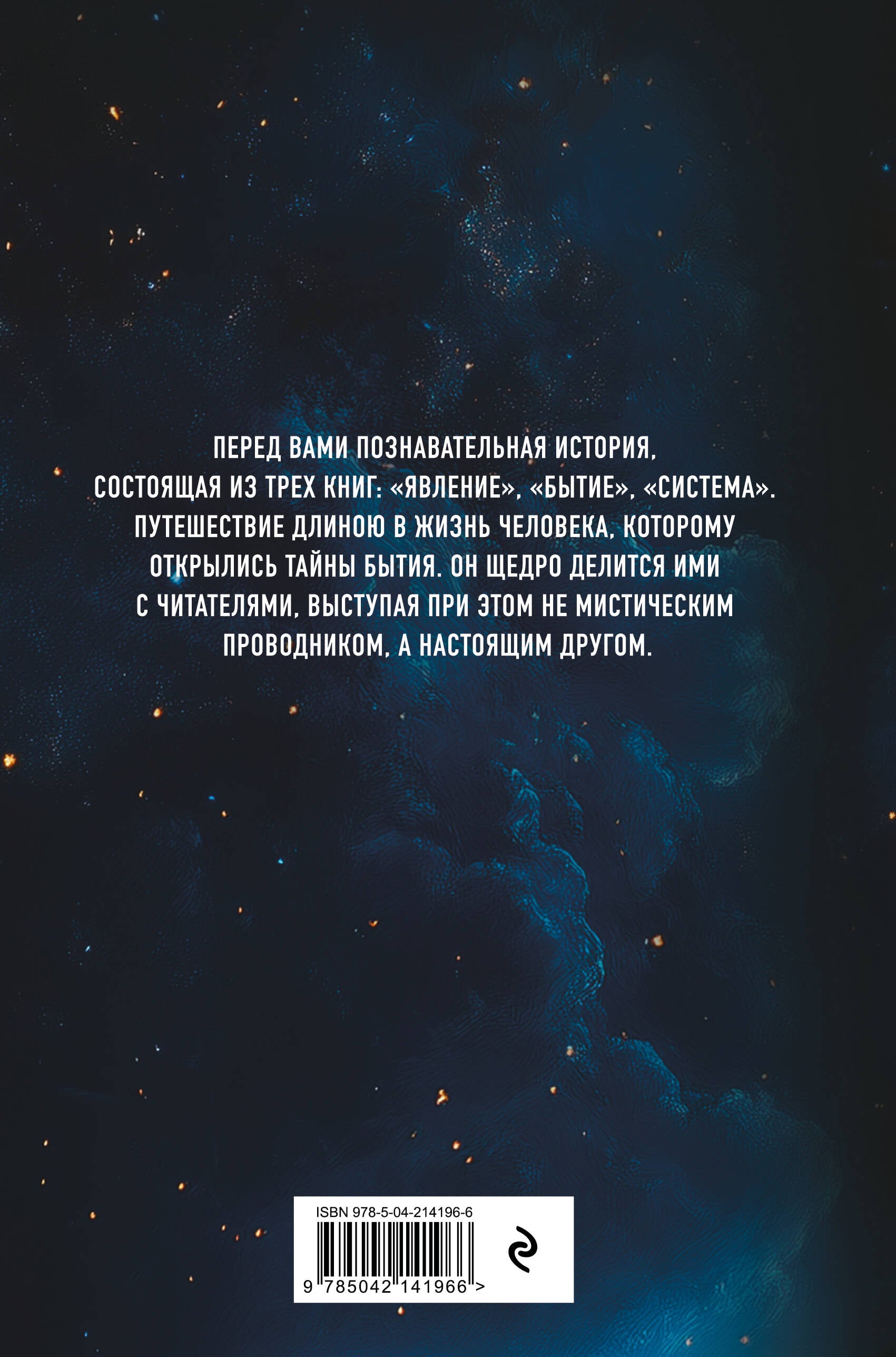 Перед вами познавательная история, состоящая из трех книг: «Явление», «Бытие», «Система». Путешествие длиною в жизнь человека, которому открылись тайны бытия. Он щедро делится ими с читателями, выступая при этом не мистическим проводником, а настоящим другом.