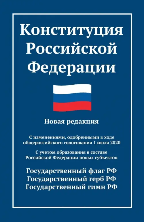 Настоящее издание содержит текст основного закона страны - Конституции Российской Федерации с изменениями, одобренными в ходе общероссийского голосования 1 июля 2020 года, а также с учетом принятия в состав Российской Федерации Донецкой Народной Республики, Луганской Народной Республики, Запорожской области, Херсонской области и образования в составе Российской Федерации новых субъектов (Федеральные конституционные законы от 4 октября 2022 г. № 5-ФКЗЗ, 6-ФКЗ, 7-ФКЗ, 8-ФКЗ).