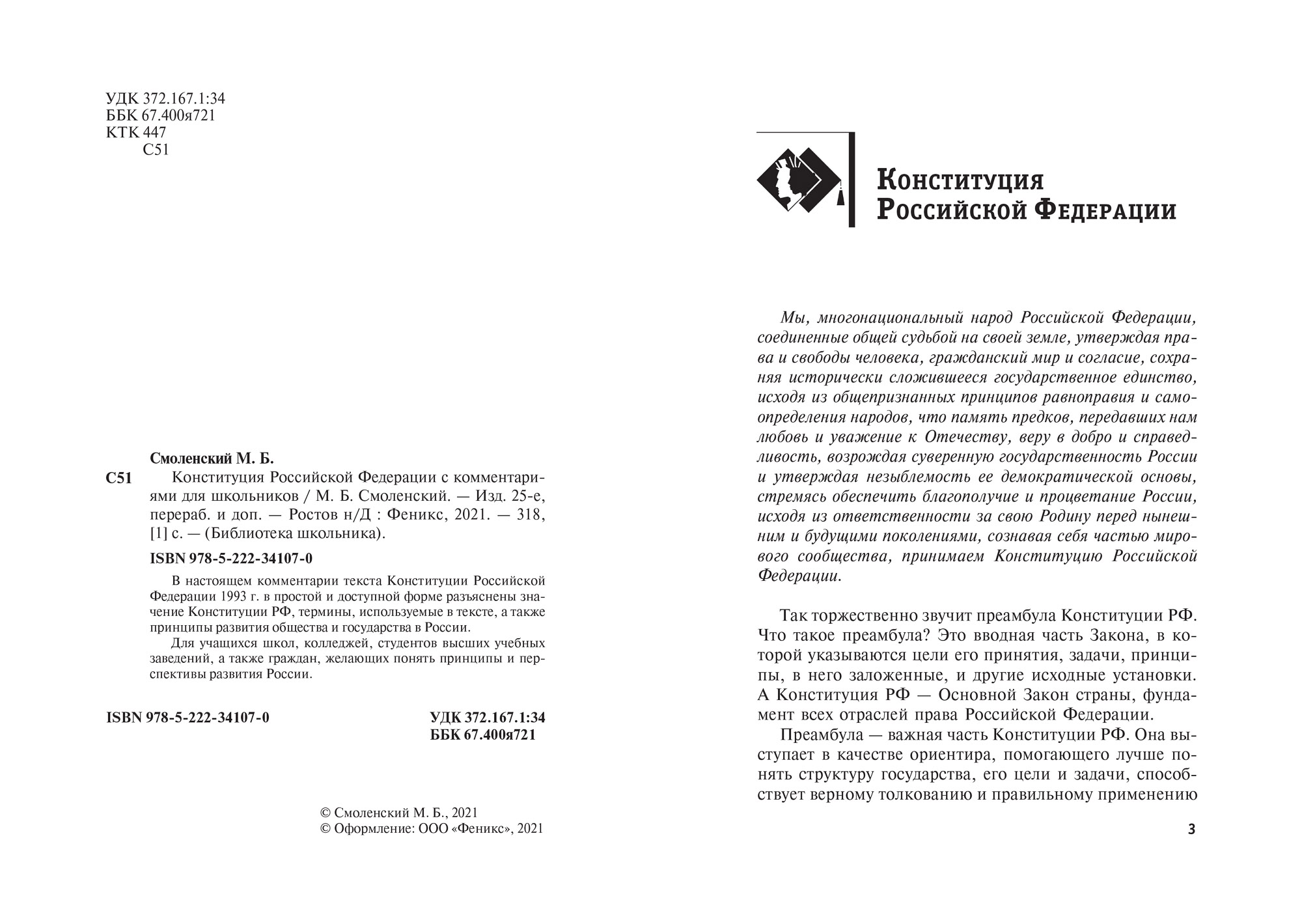 Аннотация: Конституция Российской Федерации с комментариями для школьников. Поправки 2020